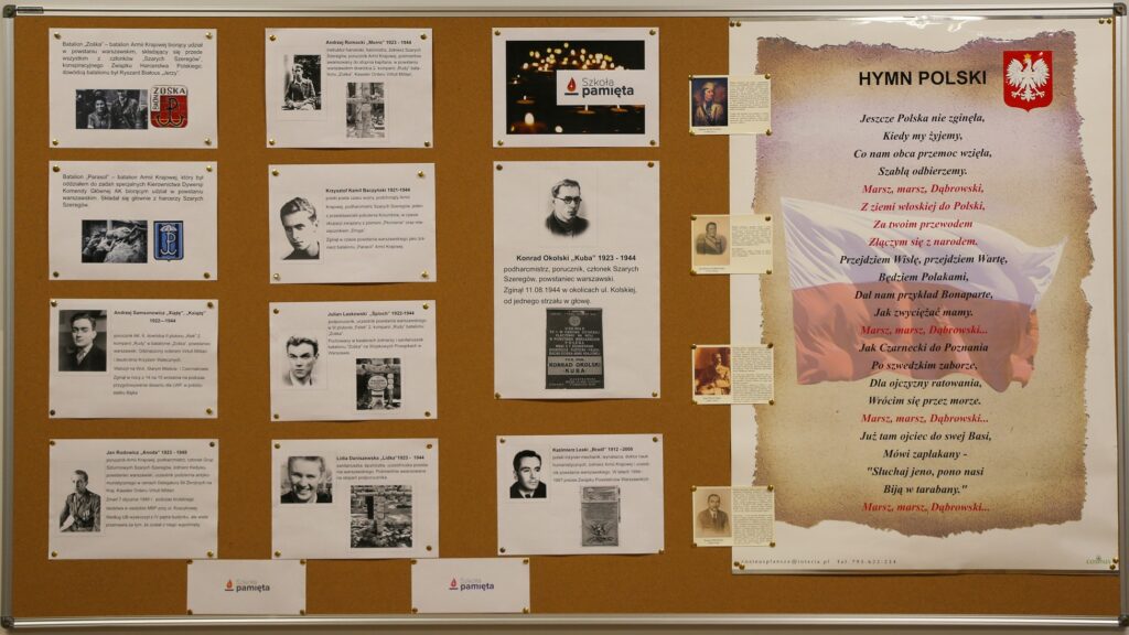 W październiku nasza szkoła uczestniczyła w kolejnej edycji akcji Ministerstwa Edukacji i Nauki „Szkoła pamięta”. Z tej okazji uczniowie przygotowali gazetkę ścienną poświęconą uczestnikom powstania warszawskiego, a przede wszystkim naszemu lokalnemu bohaterowi – Konradowi „Kubie” Okolskiemu. „Kuba” był porucznikiem Armii Krajowej, podharcmistrzem „Szarych Szeregów”, uczestnikiem Akcji pod Arsenałem. Zginął w walkach w pobliżu naszej szkoły 11 sierpnia 1944 roku, w wieku 21 lat. „Kuba” był szanowanym i lubianym dowódcą plutonu w harcerskim batalionie „Zośka”. Rejon ulicy Spokojnej był w czasie Powstania Warszawskiego ostatnim punktem oporu batalionu „Zośka” przed jego ewakuacją na Starówkę. #SzkołaPamięta