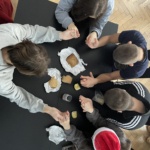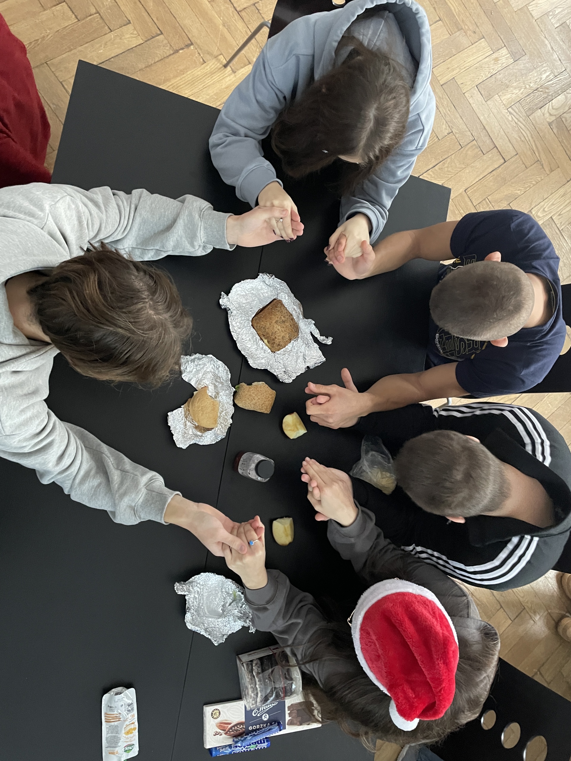 Nasza godzina wychowawcza na temat Głód, brud i wesela rozciągnęła się w czasie. Scenki do zadanych tematów przygotowane zostały na drugiej godzinie lekcyjnej. Ich tematy to: Powstańcze wesele, Zdobywanie wody i Wspólny posiłek. Potraktowaliśmy to jako konkurs fotograficzny wykonanej inscenizacji. Najlepsze zdjęcie to Wspólny posiłek. Uczniowie klasy 3TA Ola, Kinga i Adam przesłali też pocztówkę dla Powstańców. Wykonali jej wersję cyfrową oraz pracę plastyczną.