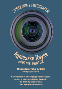 Naszym kolejnym gościem z cyklu „Spotkanie z fotografem”  będzie Agnieszka Rayss – współzałożycielka kolektywu Sputnik Photos, specjalizująca się w fotografii dokumentalnej. Studiowała historię sztuki na Uniwersytecie Jagiellońskim, posiada tytuł doktorki Uniwersytetu Artystycznego w Poznaniu. Jest dwukrotną zdobywczynią nagrody Picture of the Year, dwukrotną finalistką konkursu Hasselblad Masters Award, finalistką stypendium Fundacji Lucie, zdobywczynią grantu Fundacji Alexia oraz Lens Culture Exposure Award. Agnieszka Rayss jest też Laureatką kilku ogólnopolskich konkursów fotografii prasowej oraz stypendystką Ministra Kultury, Fundacji Współpracy Polsko-Niemieckiej, Stypendium Urzędu m.st. Warszawy i stypendium Funduszu Wyszehradzkiego. Jej prace ukazywały się w magazynach takich jak Newsweek, The Guardian i innych.