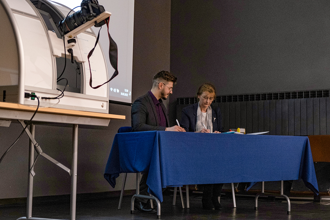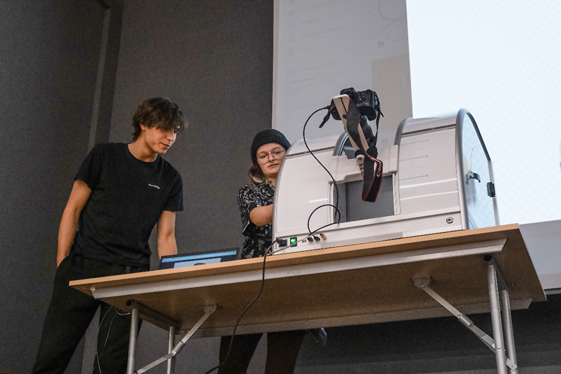 Najbardziej emocjonującą częścią wydarzenia była prezentacja otrzymanego prezentu, w wykonaniu p. Marcina Wróbla z ORBITVU. Przedstawił zebranym specyfikę oraz liczne możliwości wykorzystania urządzenia. Jest to bardzo nowoczesne, kompleksowe rozwiązanie do fotografii produktowej, umożliwiające zdecydowane przyśpieszenie procesu fotografowania i postprodukcji. Sterowane z poziomu aplikacji jest łatwe w obsłudze oraz gwarantuje doskonałe zdjęcia, prezentacje 360° i filmy produktów takich jak np. kosmetyki, okulary, telefony komórkowe, buty, itp.