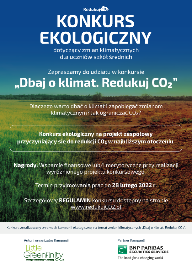Wszystkie informacje na temat konkursu dostępne są na stronie redukujCO2.pl oraz u nauczycieli geografii, fizyki, biologii oraz edukacji dla bezpieczeństwa