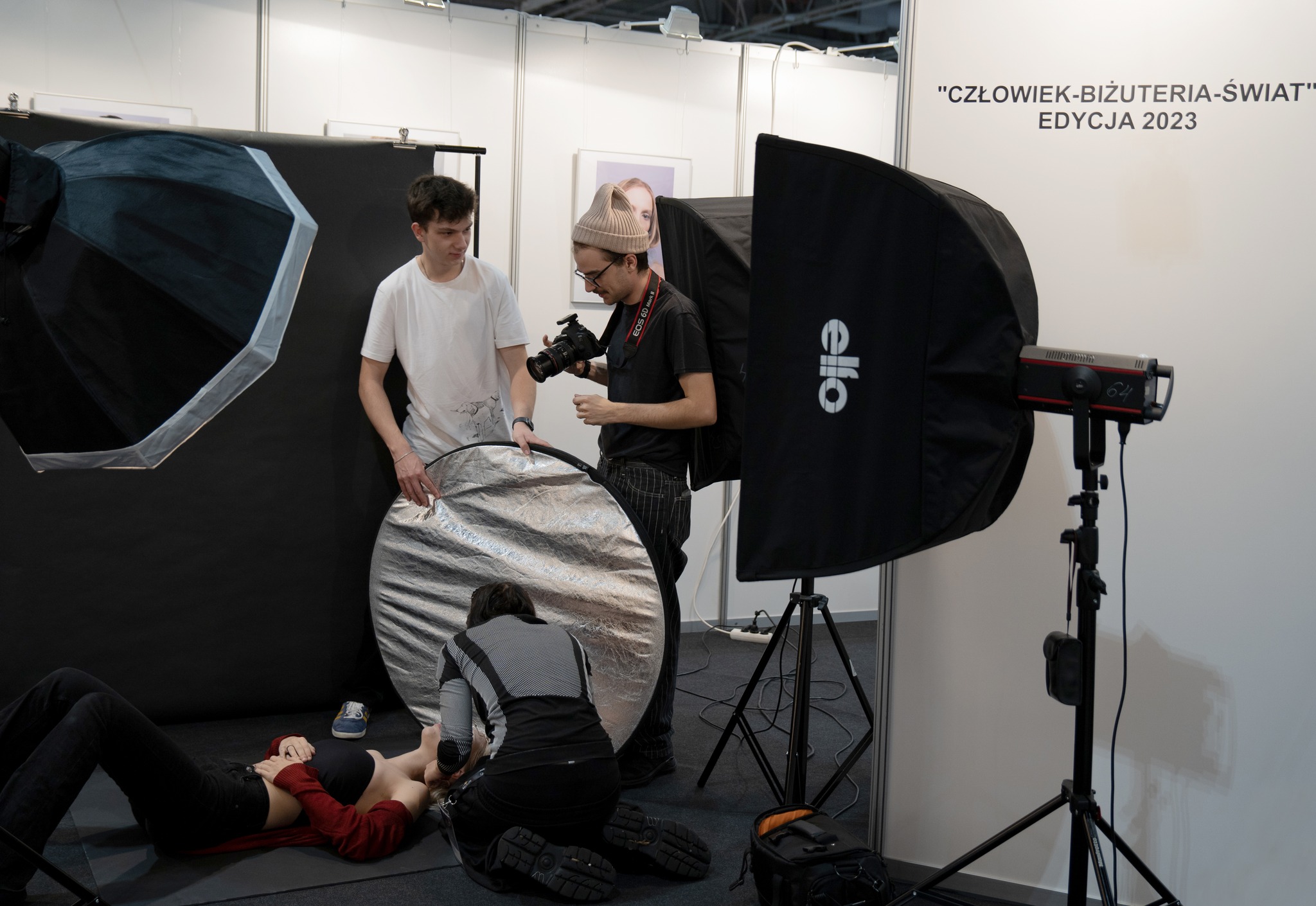 W dniach 3 i 4 października grupa uczniów wraz z nauczycielami brała udział w targach GOLDEXPO Warszawa 2024. Była to już kolejna edycja konkursu „Człowiek-Biżuteria-Świat”, organizowanego przez Fundację dla Rozwoju Polskiej Branży Złotniczo-Jubilerskiej. W zaaranżowanych dwóch studiach fotograficznych oraz w plenerze uczniowie w roli fotografów, modeli oraz wizażystów realizowali zdjęcia portretowe z biżuterią. Praca pod presją czasu, w trudnych warunkach wymagała od uczniów kreatywności, świetnej organizacji oraz elastycznego podejścia do pracy. Kolejnym etapem będzie edycja i postprodukcja zdjęć, obrady jury, wyłonienie laureatów konkursu, przygotowanie kalendarza na 2025 oraz wystawa w Pałacu Chodkiewiczów w Warszawie. Bardzo dziękujemy organizatorom za owocną wieloletnią współpracę oraz uczniom za udział i zaangażowanie w projekcie.