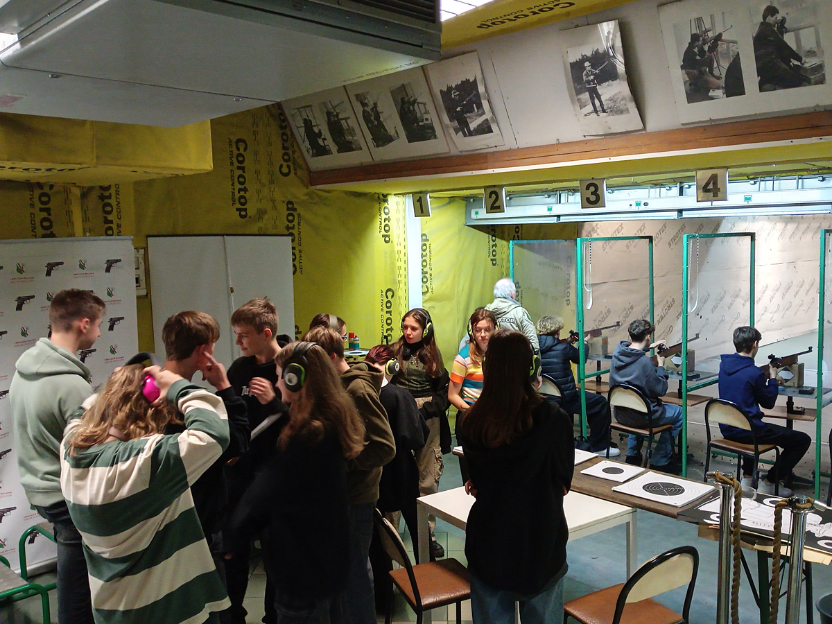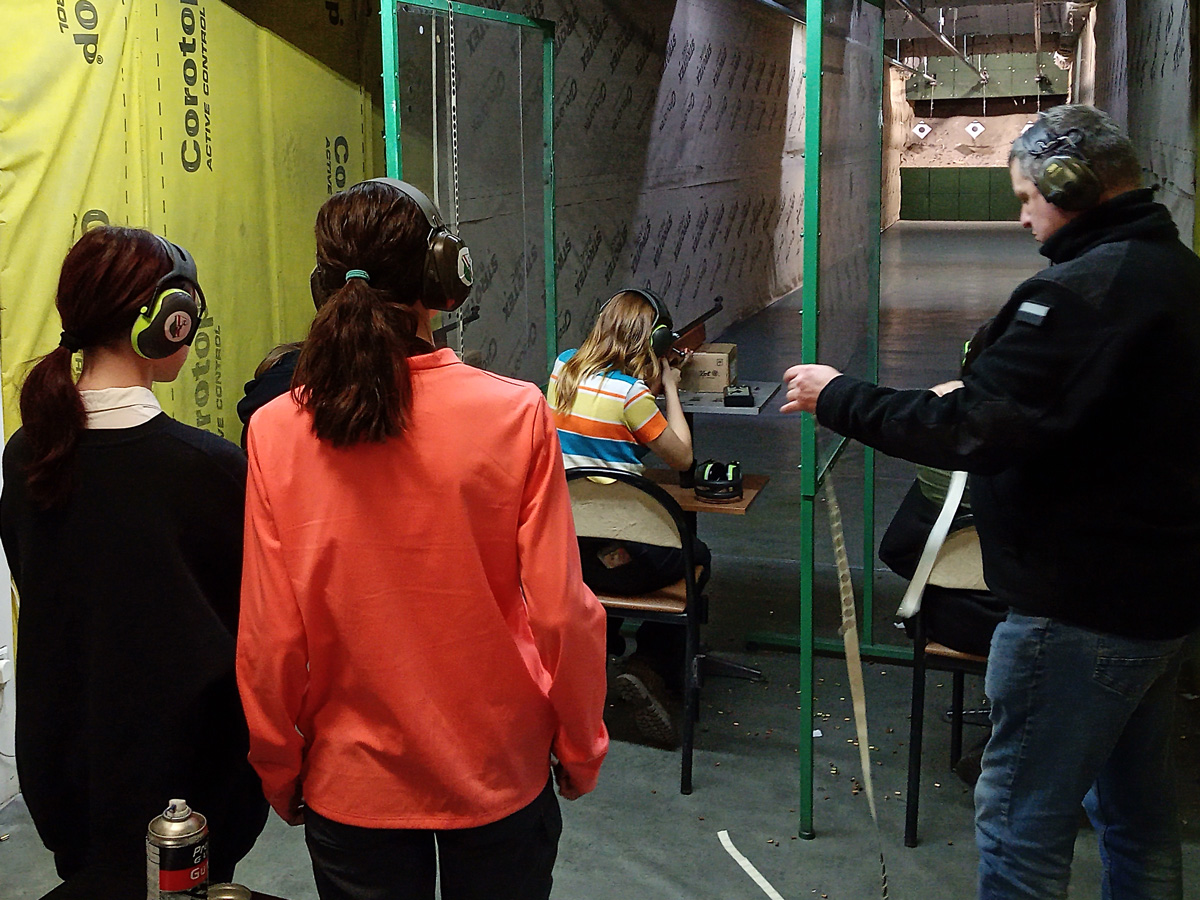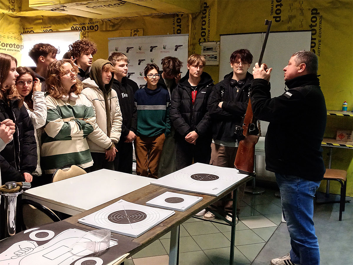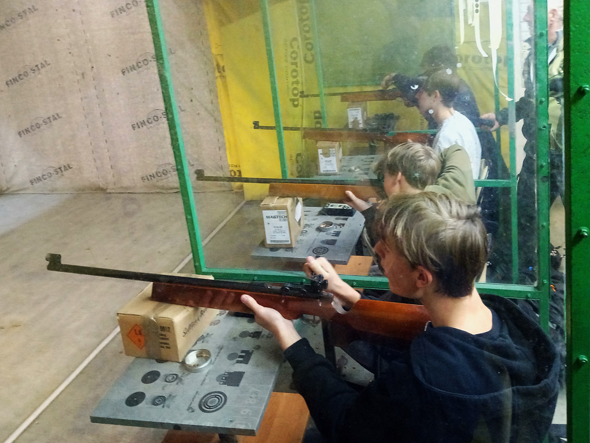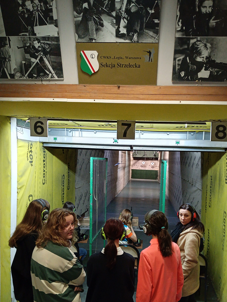 Po krótkim spacerze i przejażdżce na Łazienkowską 3, znaleźli się w zupełnie innym otoczeniu – zamkniętym i głośnym. W Centralnym Wojskowym Klubie Sportowym LEGIA Warszawa Sekcja Strzelecka młodzież realizowała zagadnienia edukacji obronnej.