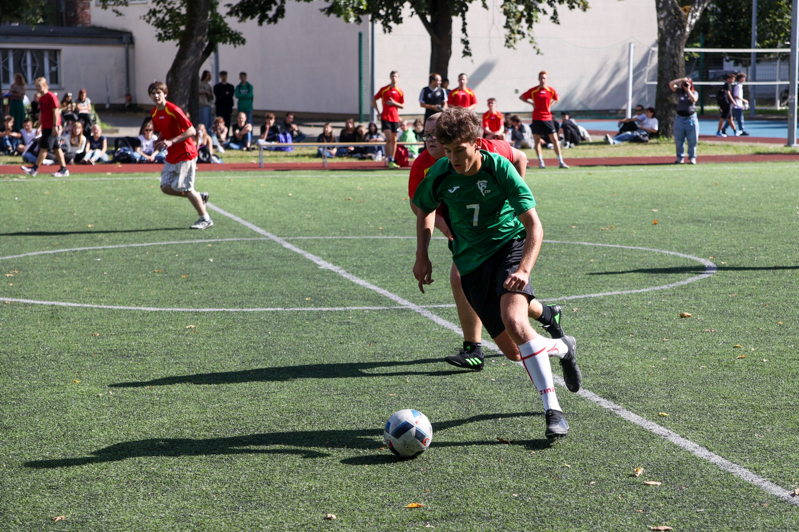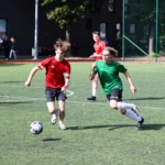 Piłkarze wspierani przez trenerów i ekipy asystujące rozegrali piękny mecz sędziowany przez pana Pawła Mazura. Gorąco kibicowali im uczniów z obu szkół.
