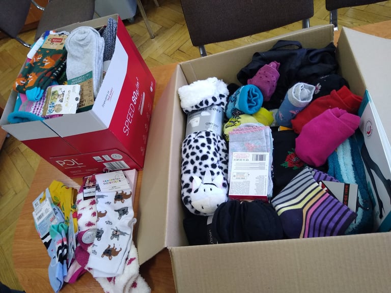Piątek 29 listopada był Dniem Kolorowych Skarpetek na Spokojnej. Akcja polegała na założeniu i wyeksponowaniu kolorowych skarpetek (aby było kolorowo) oraz zbiórce skarpet dla potrzebujących dzieci i dorosłych. Wydarzenie zakończyło się sukcesem! Udało nam się zebrać 98 par skarpet i 2 pary rajstop. Dary zostaną posegregowane i trafią do potrzebujących za pośrednictwem Grupy Granica oraz Fundacji Ocalenie.