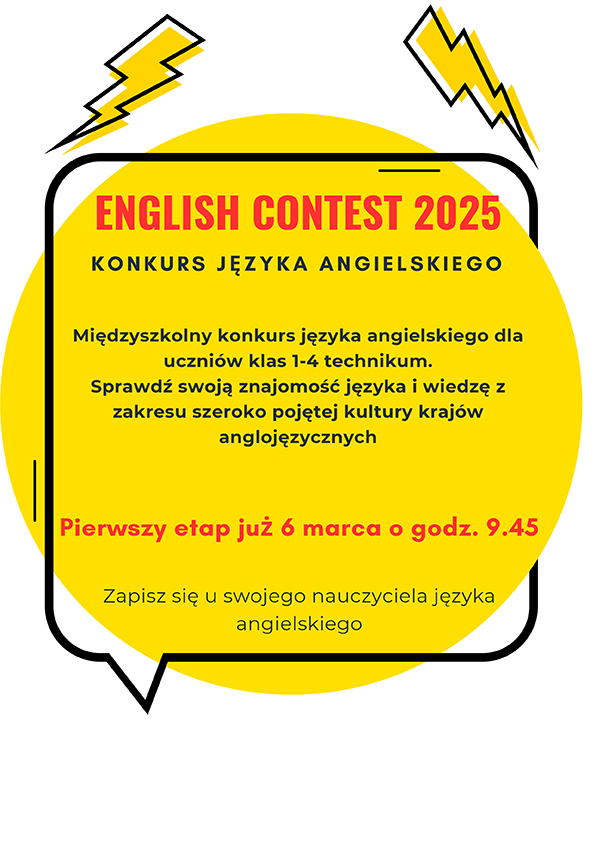 Zapraszamy do udziału w międzyszkolnym konkursie języka angielskiego dla uczniów klas 1-4 technikum.