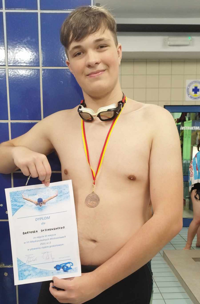 w VII Międzyszkolnych Mistrzostwach ZSSiL nr 2 w pływaniu grzbietowym.