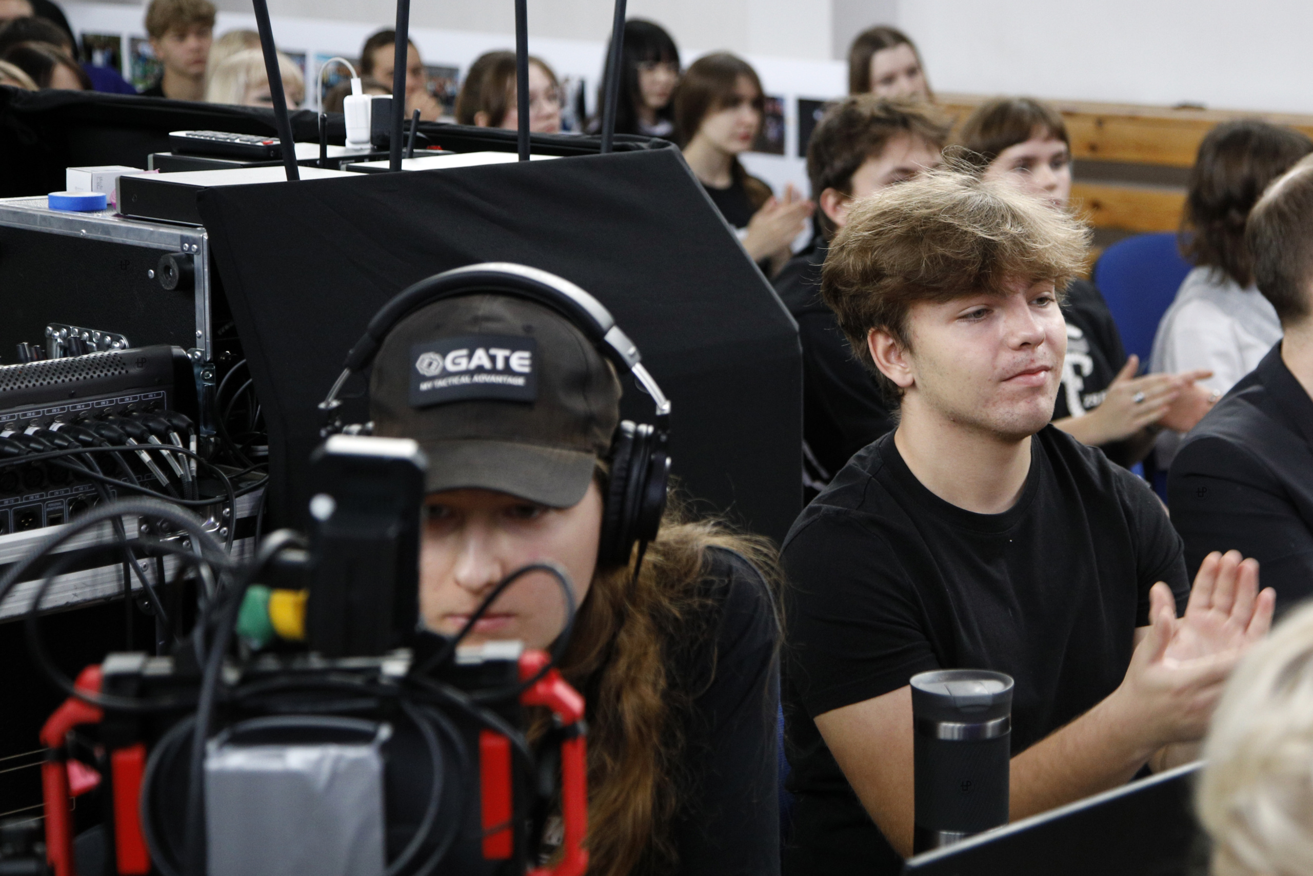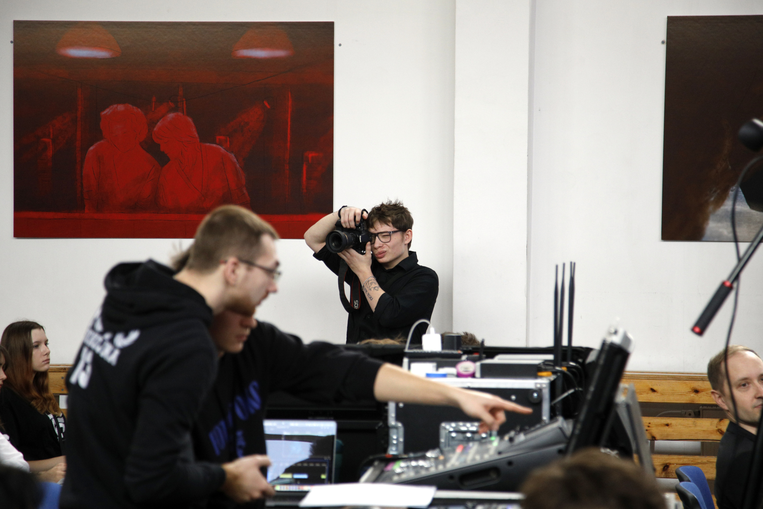 Na zakończenie uroczystości głos zabrał przedstawiciel Samorzadu Uczniowskiego. Po wyprowadzeniu sztandaru zebrani obejrzeli multimedialny spektakl „Zakochani w Fotospokojnej. Miłość utrwalona” przygotowany przez szkolny Teatr Akwarium. W wyjątkowy sposób została w nim ukazana historia szkoły, jej atmosfera i związane z nią wspomnienia. W widowisku wykorzystano motywy filmowe takie jak kino noir, western czy horror. Przedstawiono życie codzienne uczniów i nauczycieli w Technikum Fototechnicznym, a jego kulminacją była wzruszająca szkolna love story w wersji animowanej. Finalna scena ukazana w animacji, przygotowanej przez uczniów opowiadała o miłości, która narodziła się w murach tej szkoły, podkreślając, że technikum przy Spokojnej jest czymś więcej niż miejscem edukacji – to przestrzeń, gdzie rodzą się tradycje, pasje, więzi i uczucia.