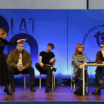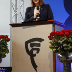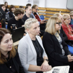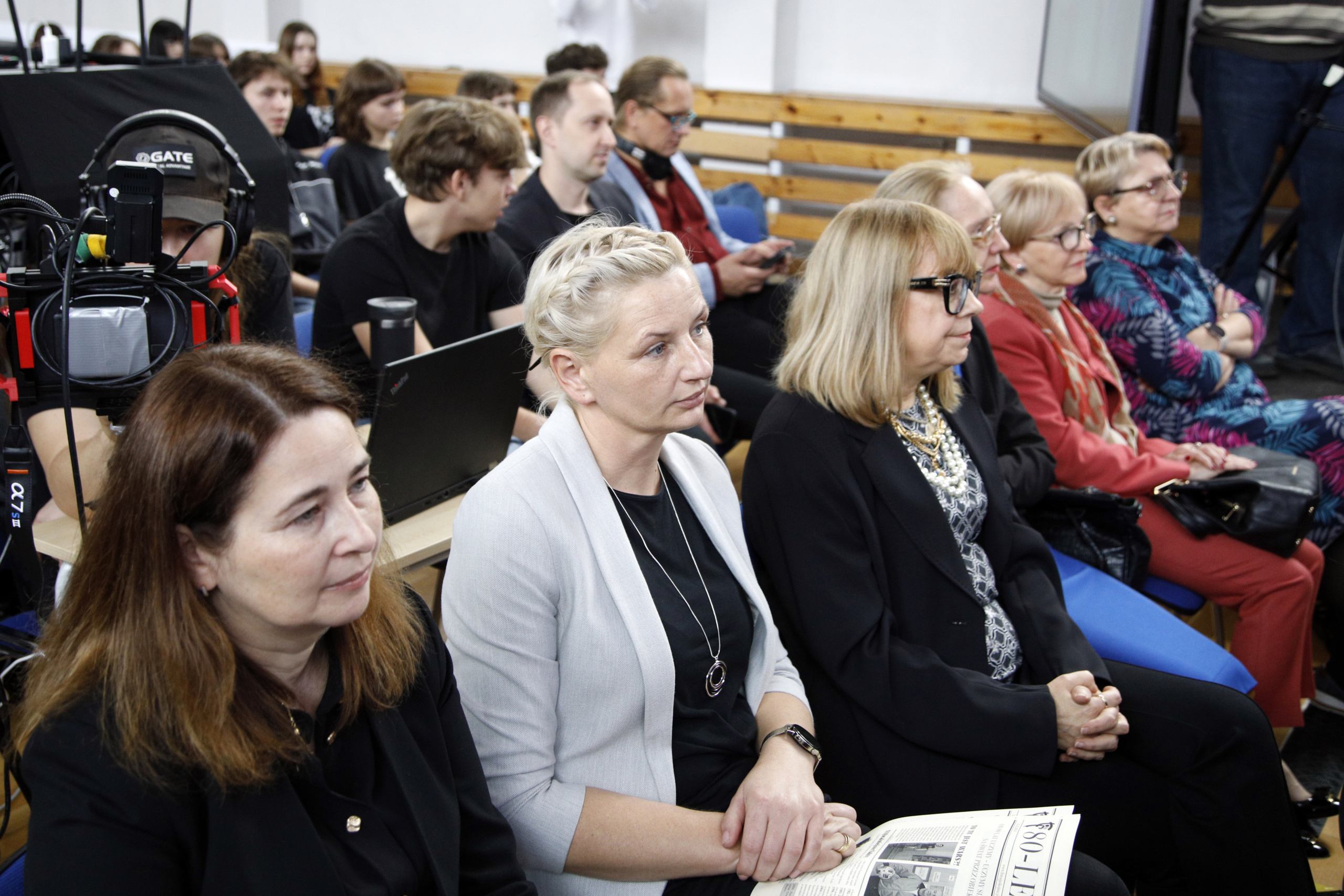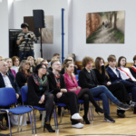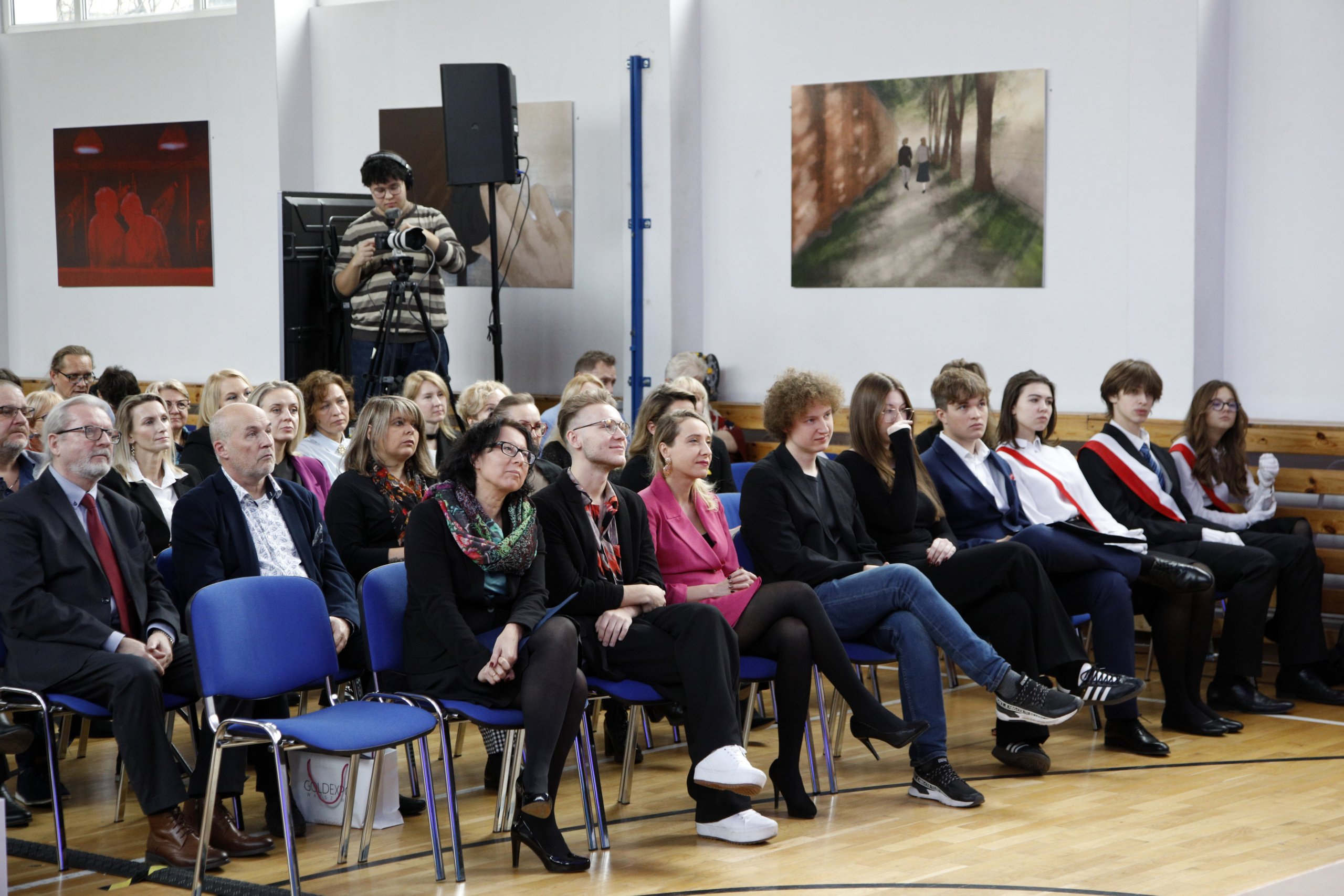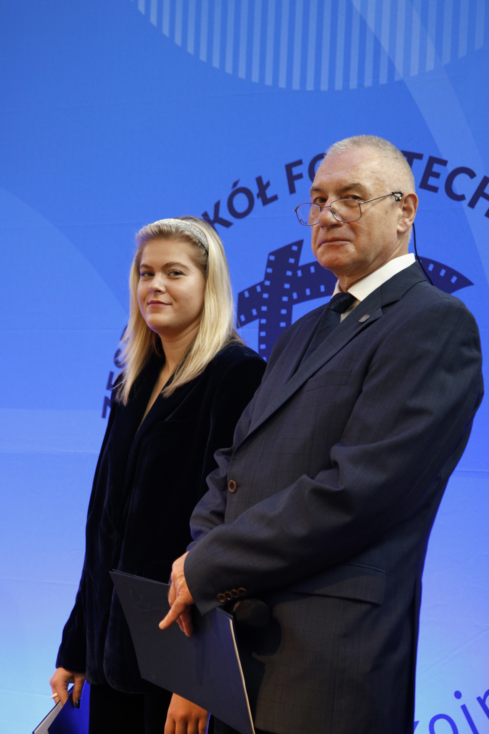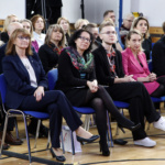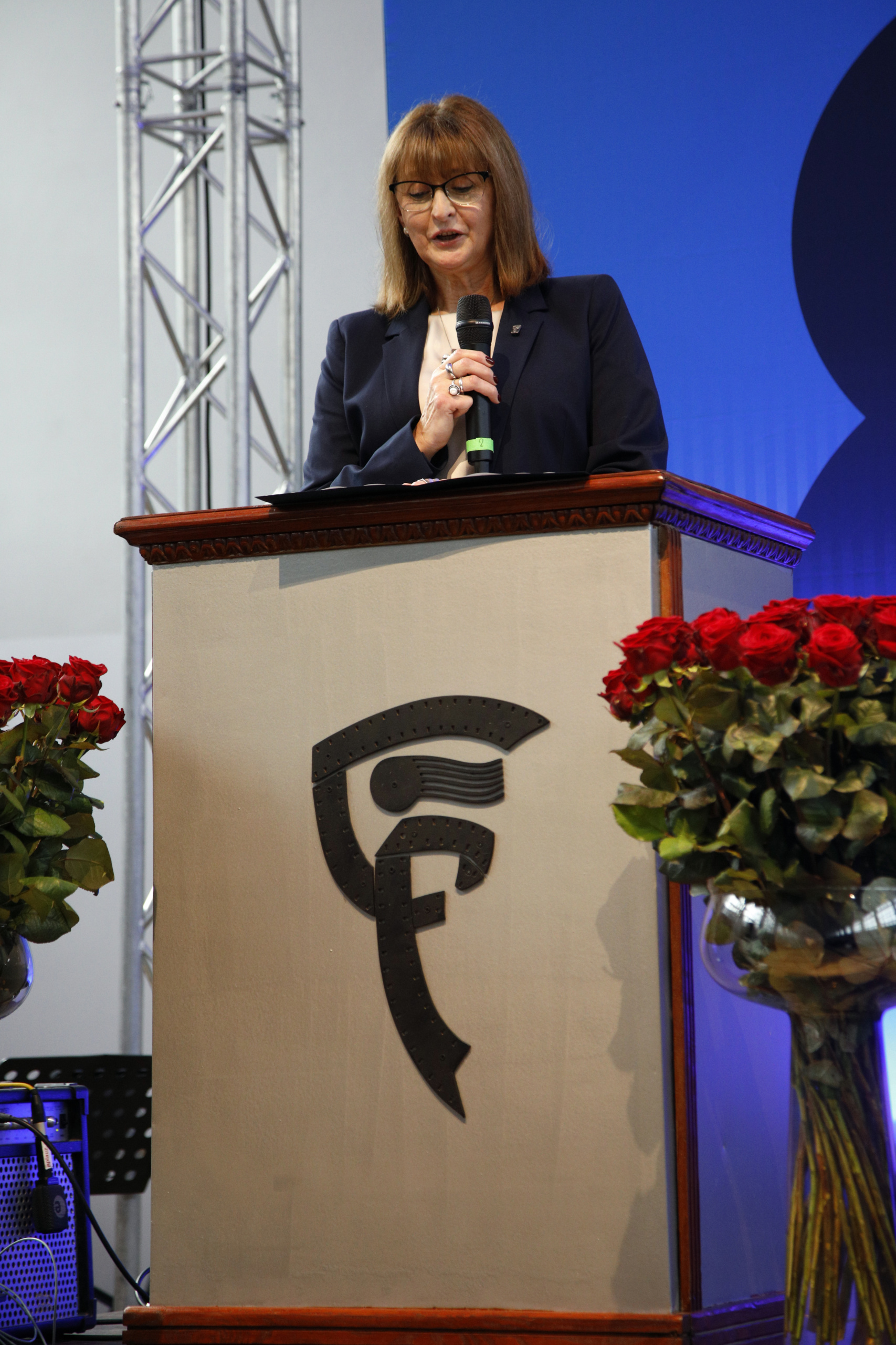 Opowiedziała o początkach kształcenia fotografów w Warszawie i pierwszych jego instytucjach, które dały początek Zespołowi Szkół Fototechnicznych przy ulicy Spokojnej. Przypomniała historię naszej szkoły wspominając jej kolejnych dyrektorów. Przedstawiła również aktualną ofertę ZSF, będącego miejscem, gdzie młodzi ludzie mogą realizować swoje pasje. Skierowała także słowa uznania do nauczycieli, którzy tworzyli i tworzą szkołę. Wspomniała o rodzicach naszych uczniów i podziękowała im za aktywna obecność w życiu szkoły i inspirującą współpracę.