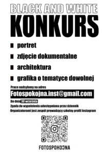 Zadanie konkursowe polega na stworzeniu zdjęcia lub grafiki w jednej z czterech kategorii w przestrzeni czarno – białej.