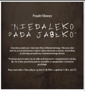 Materiał zebrany do tej pory pozwolił na stworzenie dwóch filmów jednego dokumentującego przeprowadzone wywiady oraz fragmentu filmu Niedaleko pada jabłko.