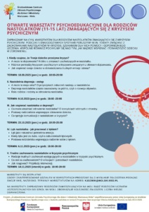Otwarte warsztaty psychoedukacyjne dla rodziców nastolatków