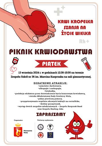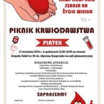 W piątek, 13 września nasza szkoła gościła w Zespole Szkół im. M. Kasprzaka nr 36, na pikniku promującym honorowe krwiodawstwo. Było to wydarzenie pełne atrakcji, które przyciągnęło wielu zainteresowanych uczniów i nauczycieli. Prelekcje o znaczeniu donacji krwi, fotobudka, symulator dachowania, pokaz udzielania pierwszej pomocy i wiele innych aktywności sprawiły, że piknik był nie tylko pouczający, ale i pełen zabawy. Impreza została uświetniona przez dwa koncerty młodzieżowych zespołów muzycznych – Kasprzak Band oraz Healing Joke. Fotoreportaż z pikniku zrobili uczniowie ZSF: Anastasiia Overchuk, Przemysław Niczyporuk i Mateusz Sitarczuk z kl 2bf. Plakat promujący to wydarzenie zaprojektował Szymon Dudek z kl 4c. Dziękujemy wszystkim, którzy przyczynili się do jego organizacji!