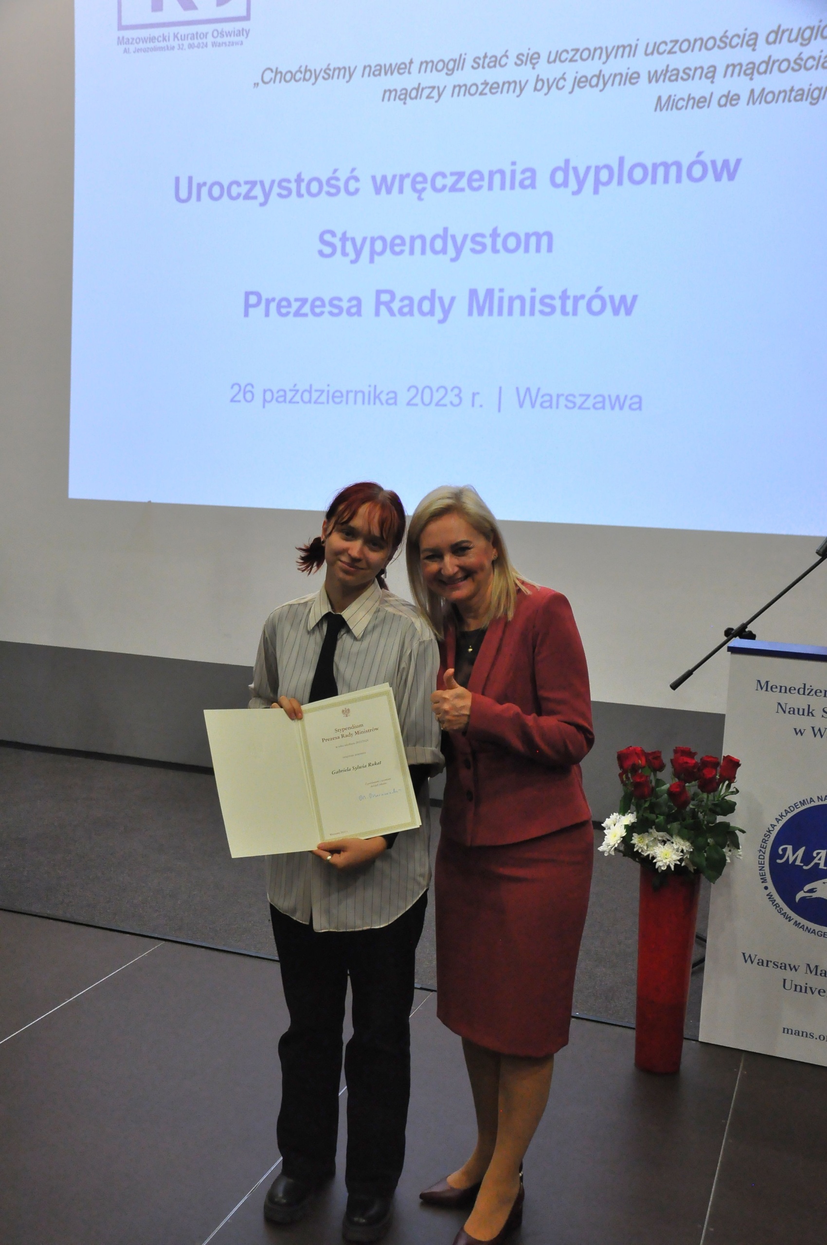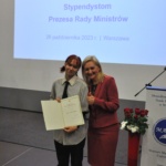 Z wielką radością informujemy, że w dniu 26 października 2023 roku uczennica GABRIELA RUKAT uhonorowana została Stypendium Prezesa Rady Ministrów. Nagrodę otrzymała za uzyskanie w roku szkolnym 2022/2023 najwyższej średniej ocen w szkole, .