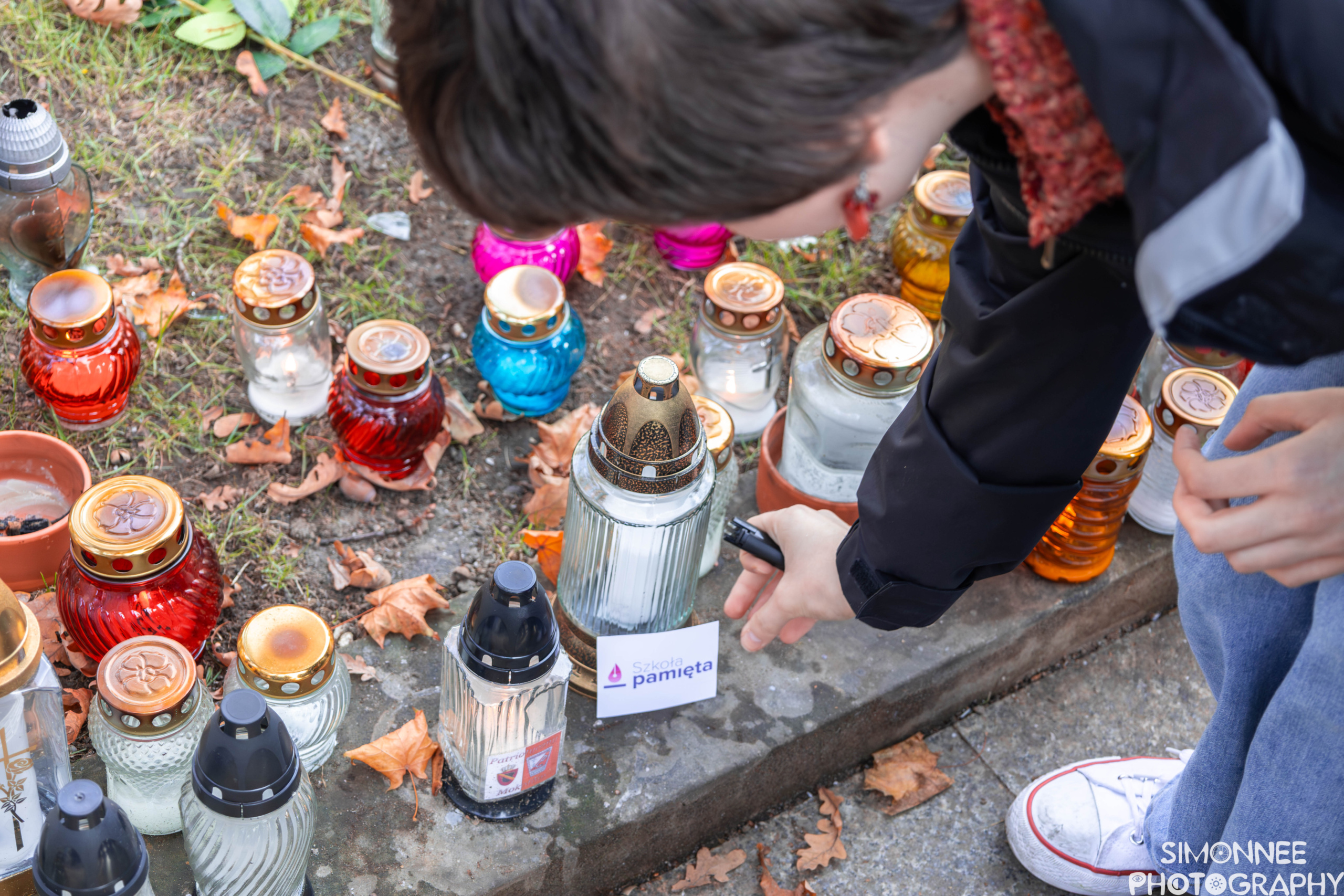 Uczniowie złożyli kwiaty i zapalili znicze w atmosferze pełnej powagi i refleksji, w związku ze zbliżającym się dniem Wszystkich Świętych.