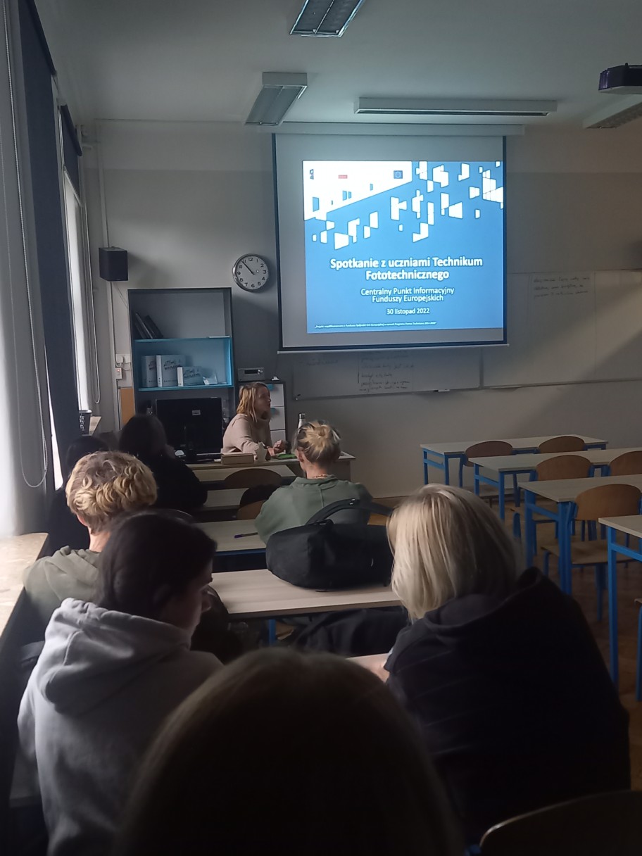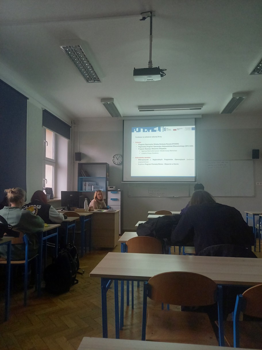 W ostatnim tygodniu, w ramach działań z zakresu doradztwa zawodowego, uczniowie klas 3Tb i 3BF wzięli udział w szkoleniu. Szkolenie zostało poprowadzone przez p. Urszulę Jackowską pracownika Centralnego Punktu Informacyjnego Funduszy Europejskich. Podczas spotkania uczniowie mieli okazję dowiedzieć się jakiego wsparcia instytucyjnego mogą oczekiwać jako młodzi przedsiębiorcy. Dowiedzieli się, jakie kwoty mogą pozyskać na założenie i rozwój firmy oraz na co zwrócić uwagę podczas wypełniania wniosków.