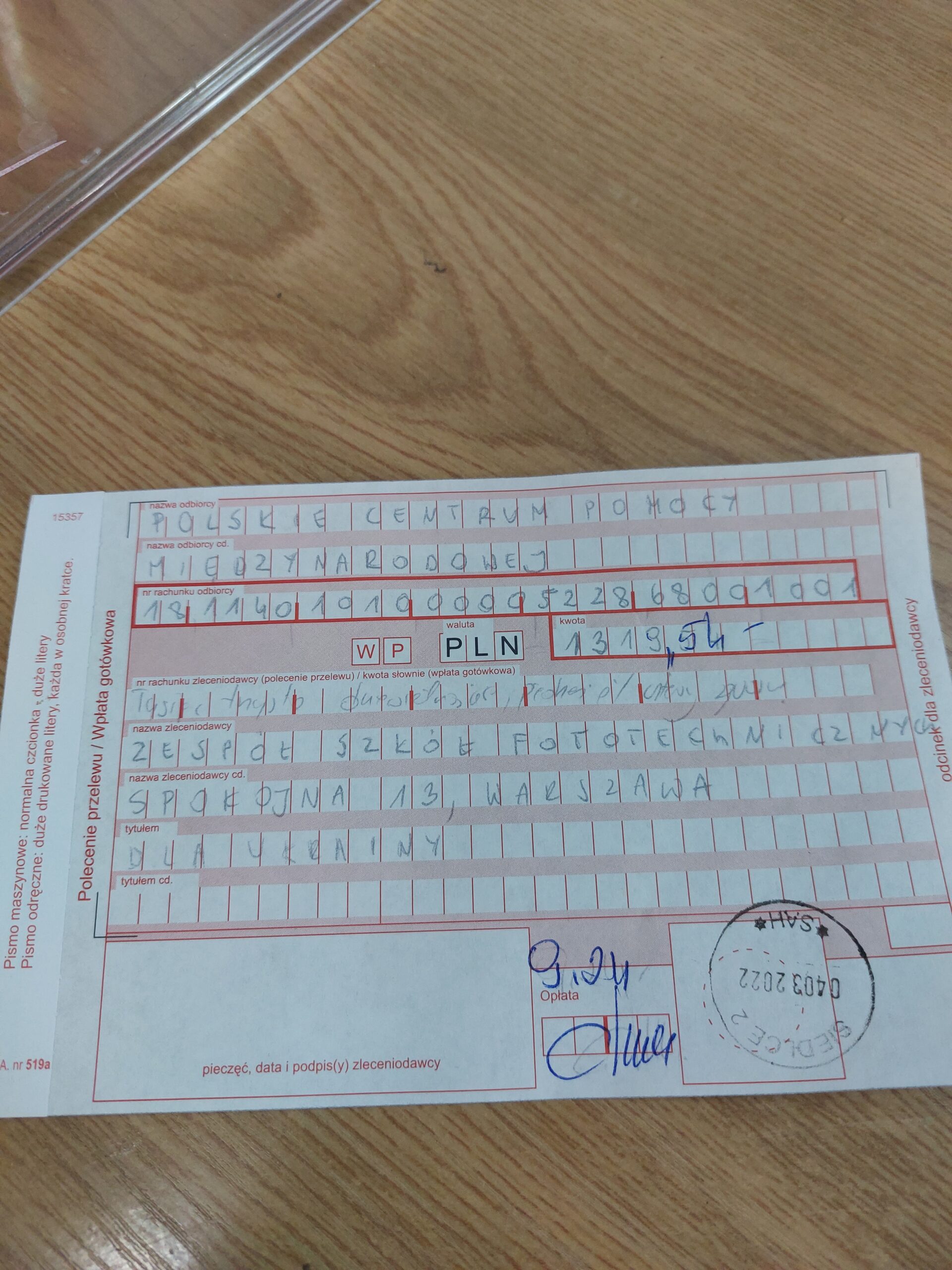 Pieniądze trafią do potrzebujących na Ukrainie za pośrednictwem Fundacji Polskie Centrum Pomocy Międzynarodowej.