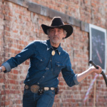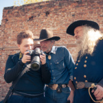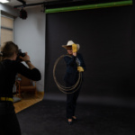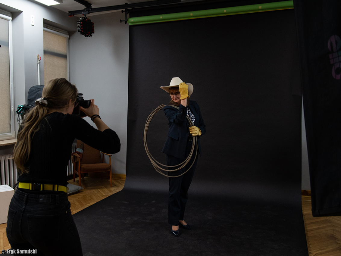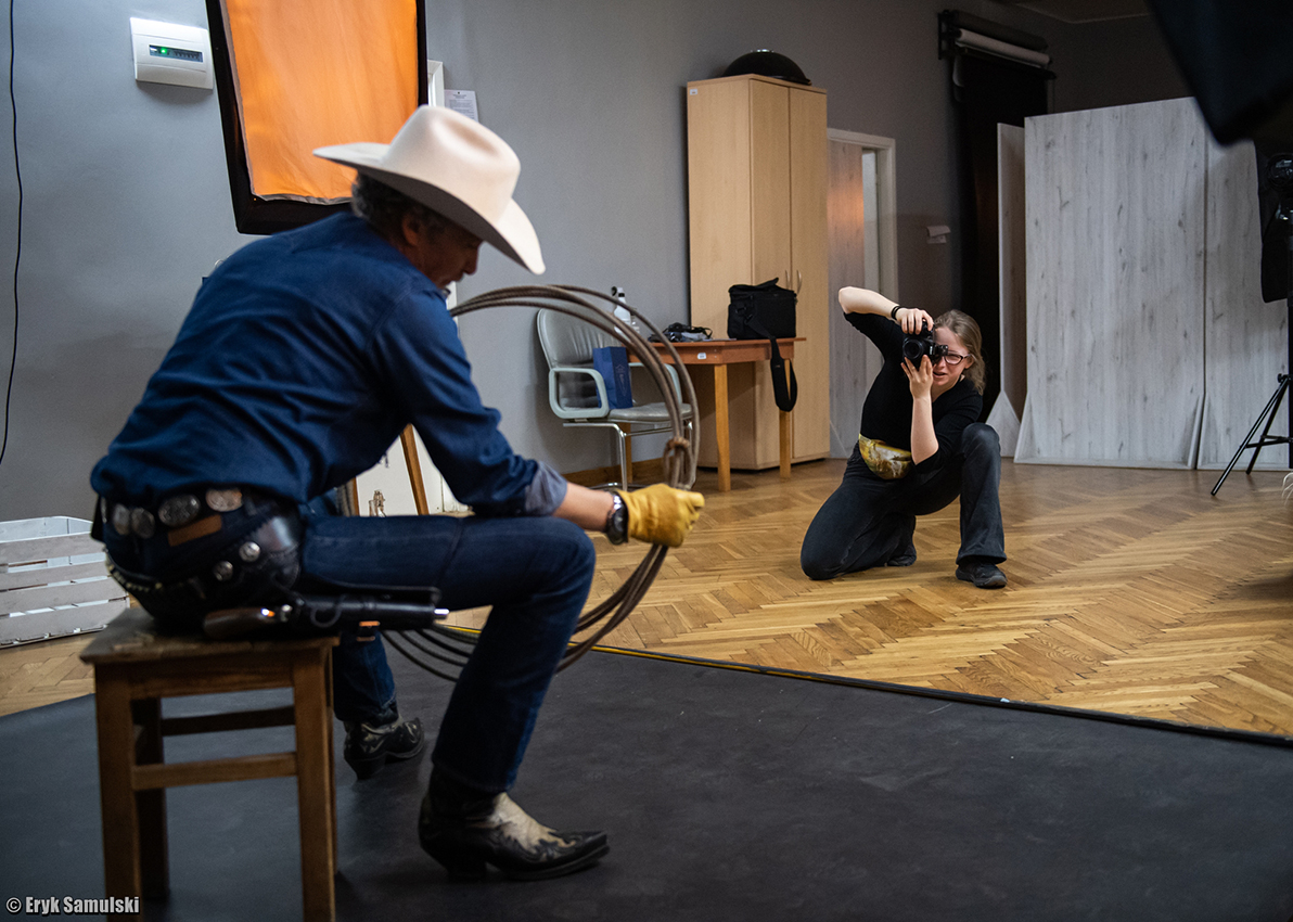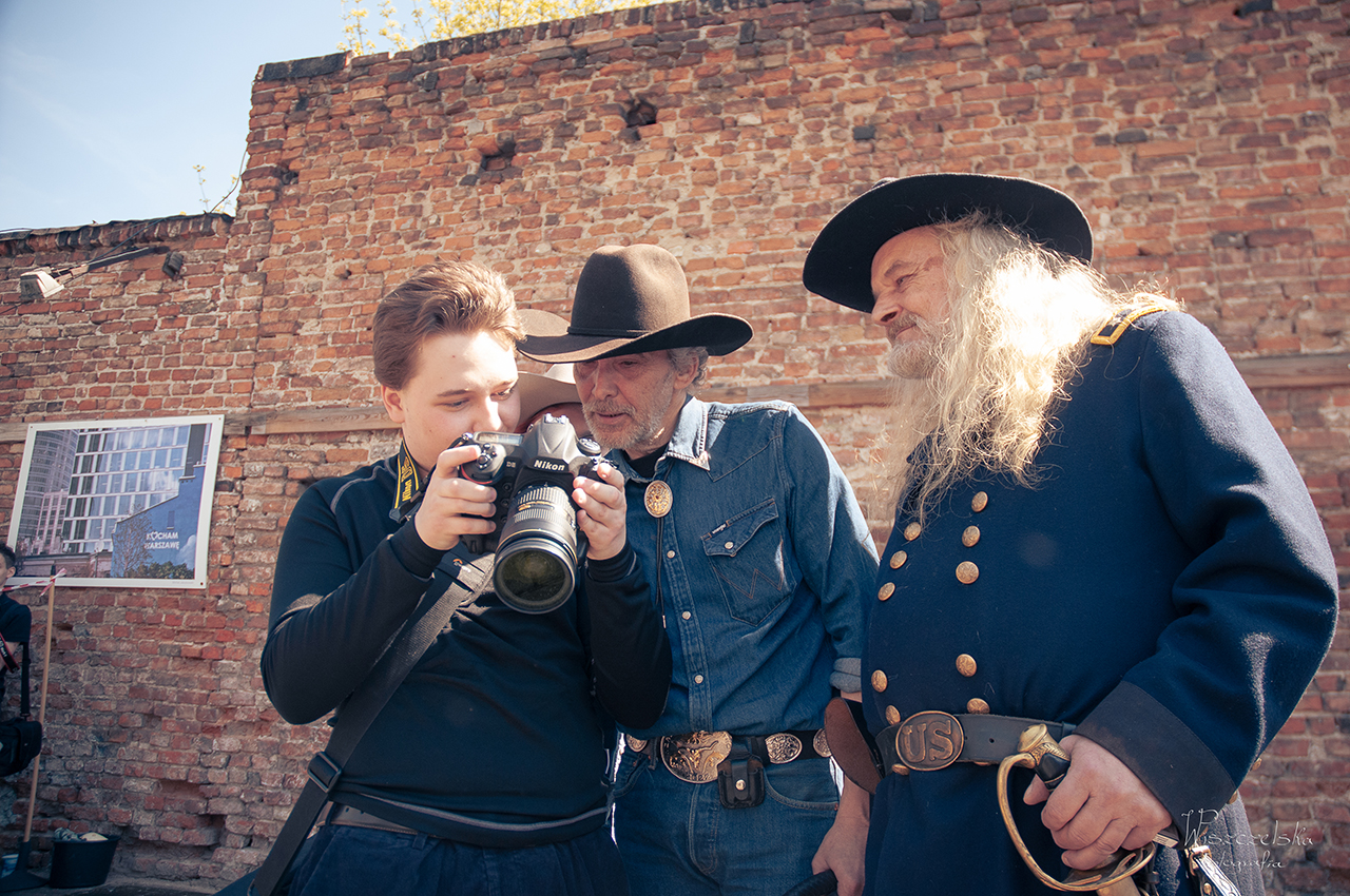 Z okazji kwietniowego Dnia Fotografii na patio szkolnym odbył się pokaz w stylu western w wykonaniu Ghosts Raiders Saloon z Poznania. Uczniowie mieli okazję na żywo zobaczyć umiejętności lidera grupy Alberta Neumanna – mistrza świata w posługiwaniu się biczem 2022r. Po pokazie zaprosiliśmy naszych gości na sesje portretowe.