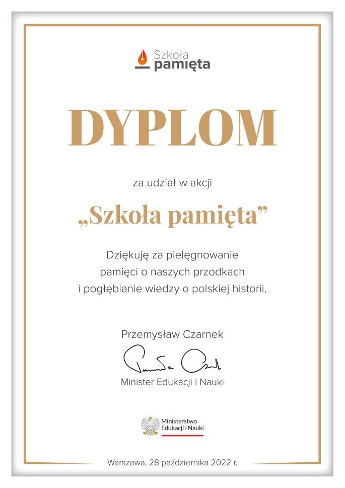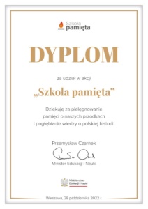 dyplom  za udział w akcji "Szkoła pamięta"