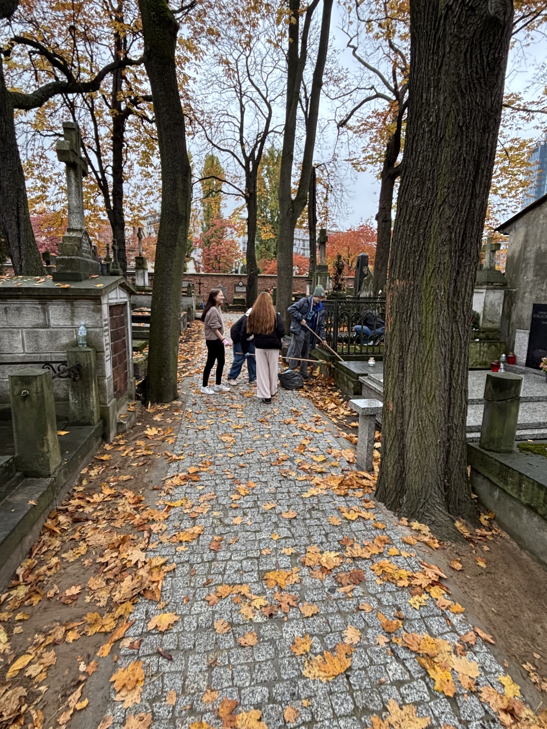 Uczniowie klasy 1 Ta uzbrojeni w niezbędny sprzęt z ochotą przystąpili do sprzątania alejek i zatroszczyli się o zapomniane groby. Sprzątanie nekropolii to nie tylko fizyczna praca, ale także doskonała lekcja życia, podczas której uczniowie uczą się odpowiedzialności, szacunku do tradycji oraz pracy zespołowej. To ważna lekcja patriotyzmu i okazja do refleksji nad pamięcią o naszych przodkach i bohaterach narodowych.