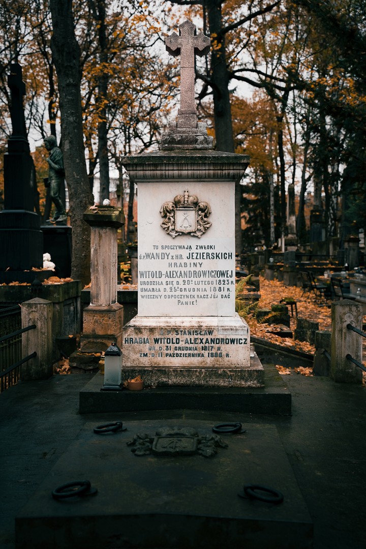Wracając centralną aleją dotarliśmy do Alei Zasłużonych i katakumb. Zatrzymaliśmy się przy grobie pisarza Władysława Reymonta – laureata literackiej Nagrody Nobla i zapaliliśmy symboliczny znicz dla wszystkich pochowanych na cmentarzu. Podczas spaceru alejkami Starych Powązek dotarliśmy do grobu poety Leopolda Staffa, pisarza Jana Parandowskiego, aktora Gustawa Holubka, aktorek Jadwigi Smosarskiej, Hanki Bielickiej i Danuty Szaflarskiej, Bogusława Kaczyńskiego – popularyzatora sztuki i muzyki operowej, kompozytorów Czesława Niemena i Tadeusza Nalepy,