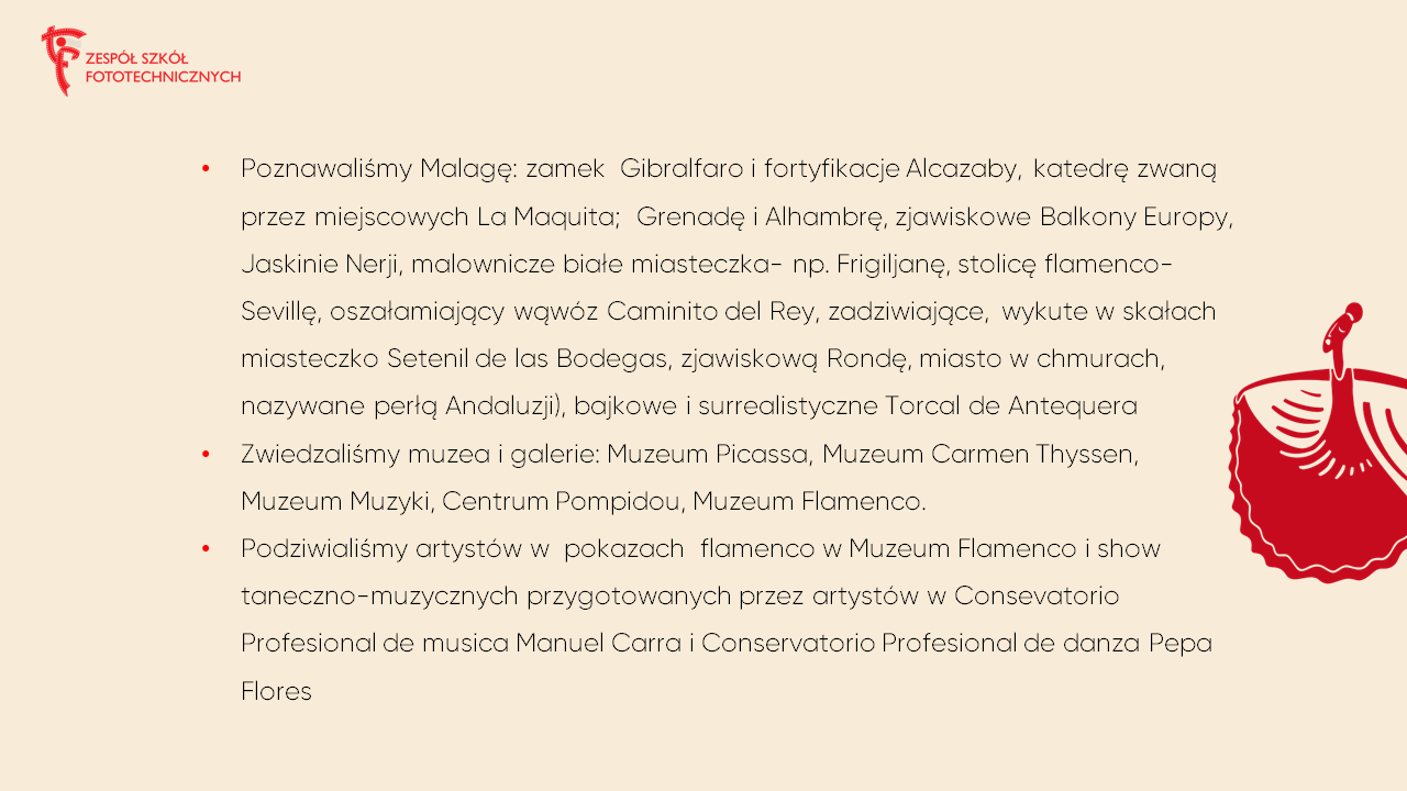 Wspomnienia z wyjazdów do Malagi odżyły dzięki zaprezentowanym zdjęciom i filmom zrealizowanym przez uczniów i opiekunów, a ciekawość publiczności zaspokoili uczestnicy praktyk w Hiszpanii, udzielając odpowiedzi na każde pytanie z widowni.