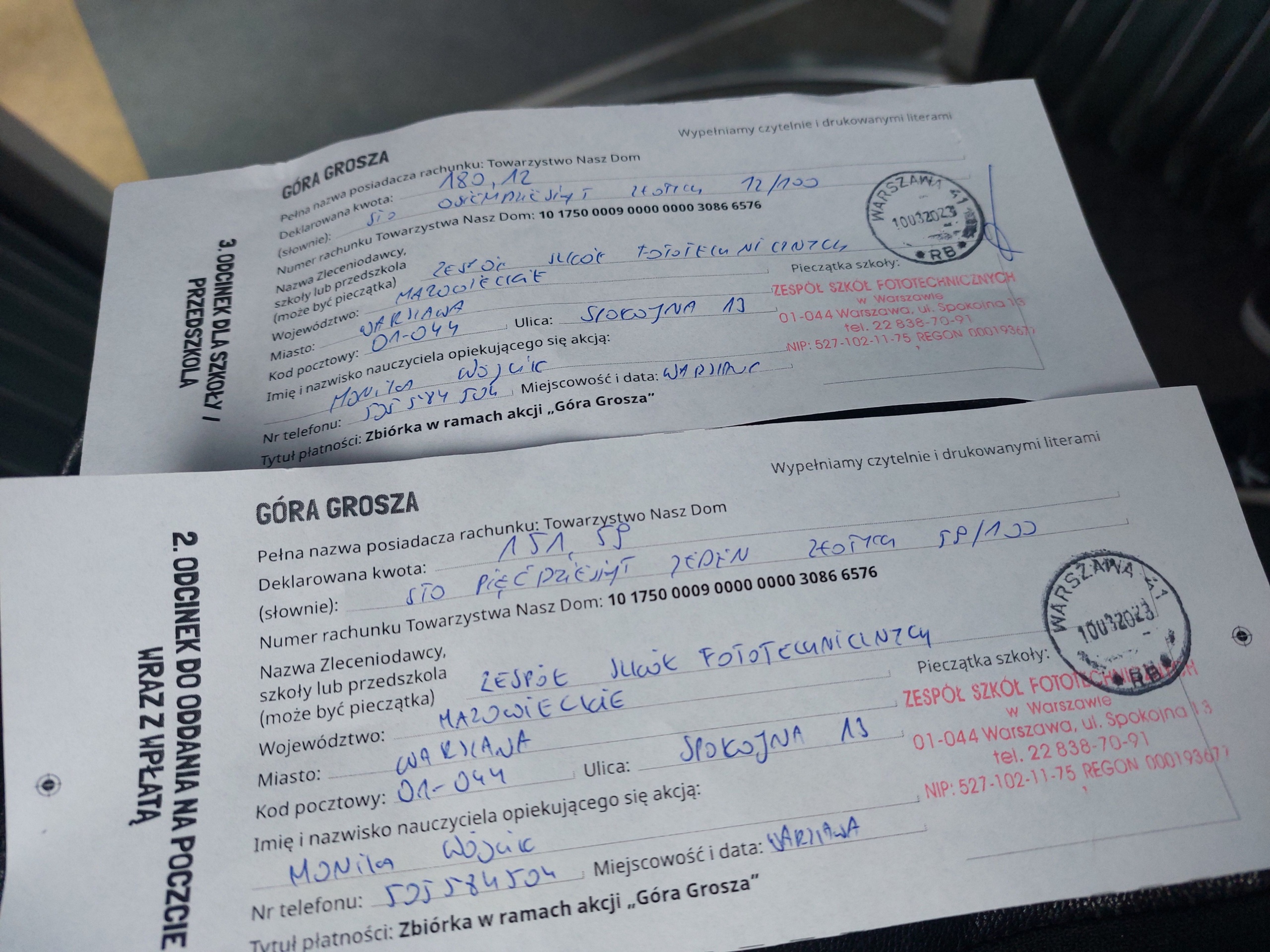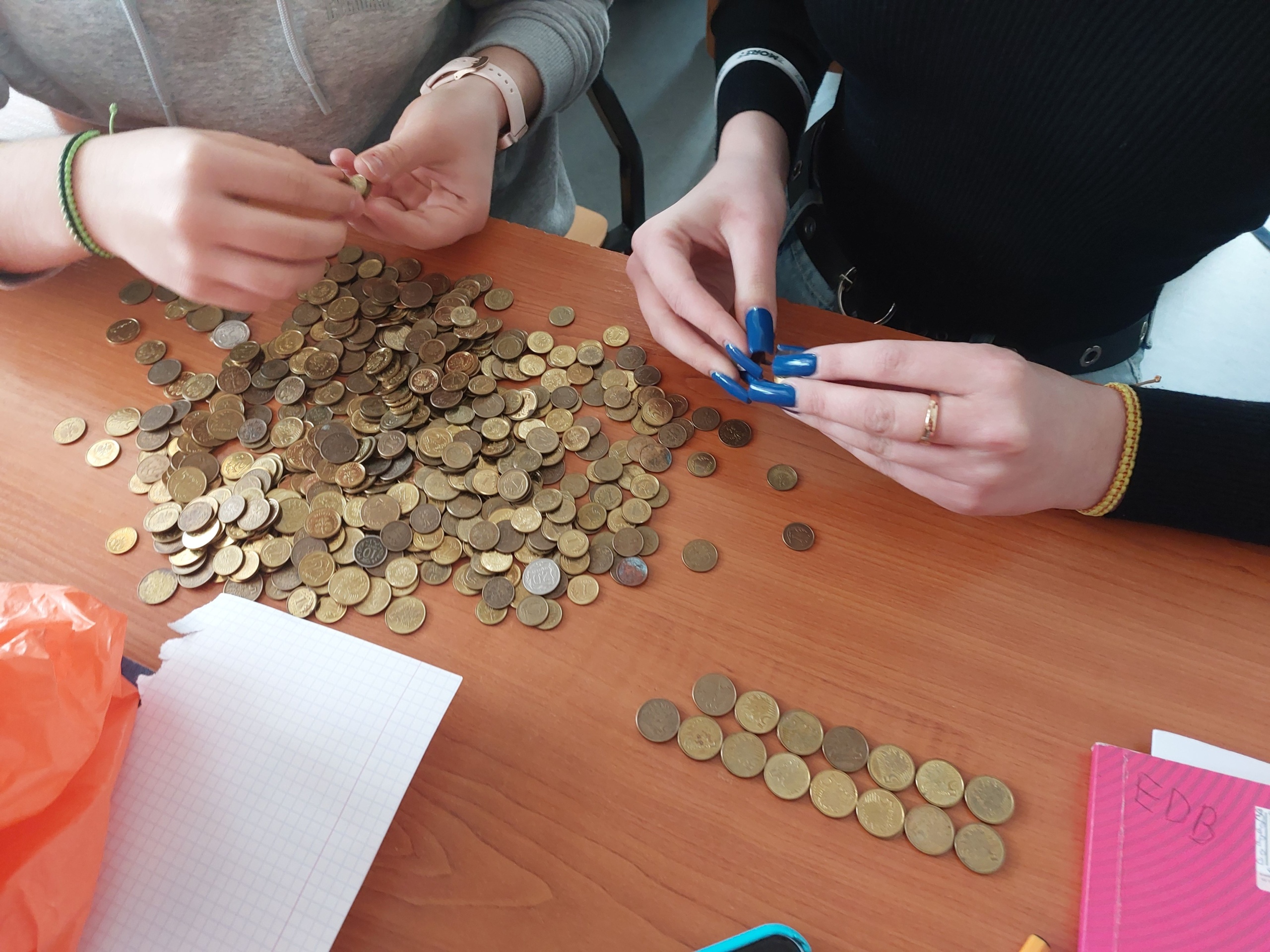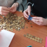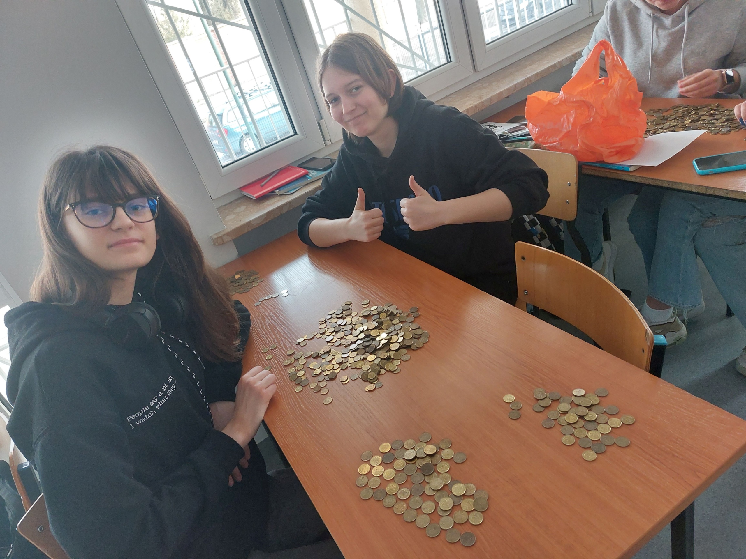 Z pomocą uczniów klas pierwszych zebrane monety zostały podzielone, policzone, spakowane i przekazane, w dniu 10 marca, na konto Towarzystwa Nasz Dom.