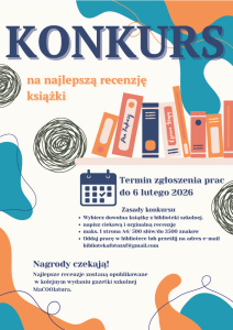 Lubisz czytać? Weź udział w konkursie na najlepszą recenzję książki ze szkolnej biblioteki organizowanym przez bibliotekę szkolną i redakcję gazetki szkolnej MaCOOLatoora.