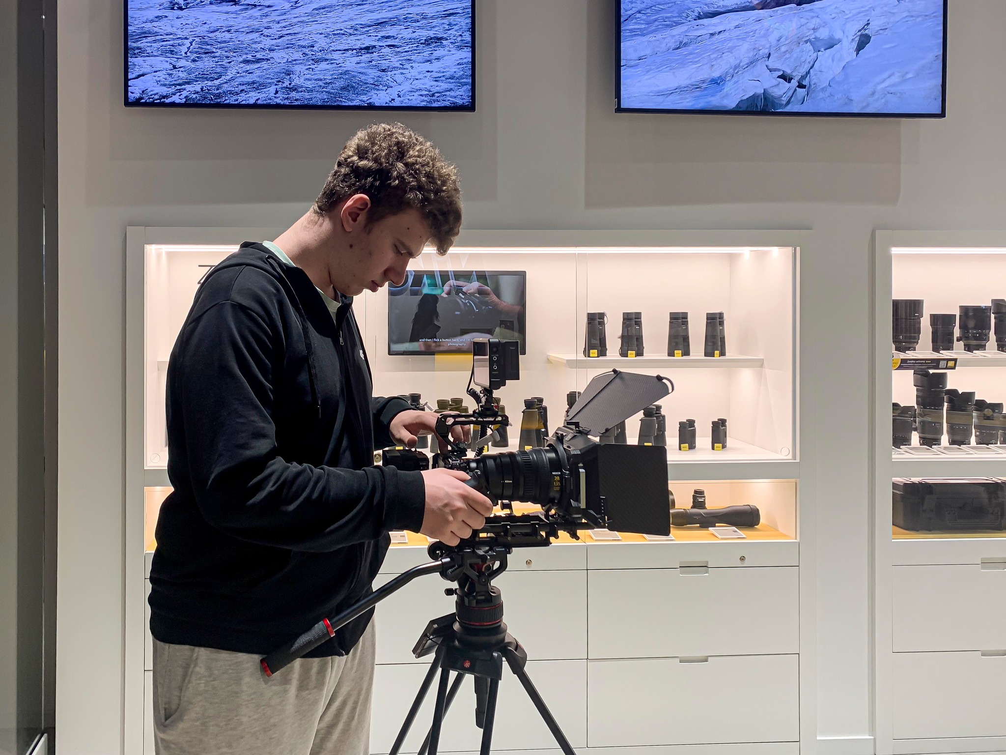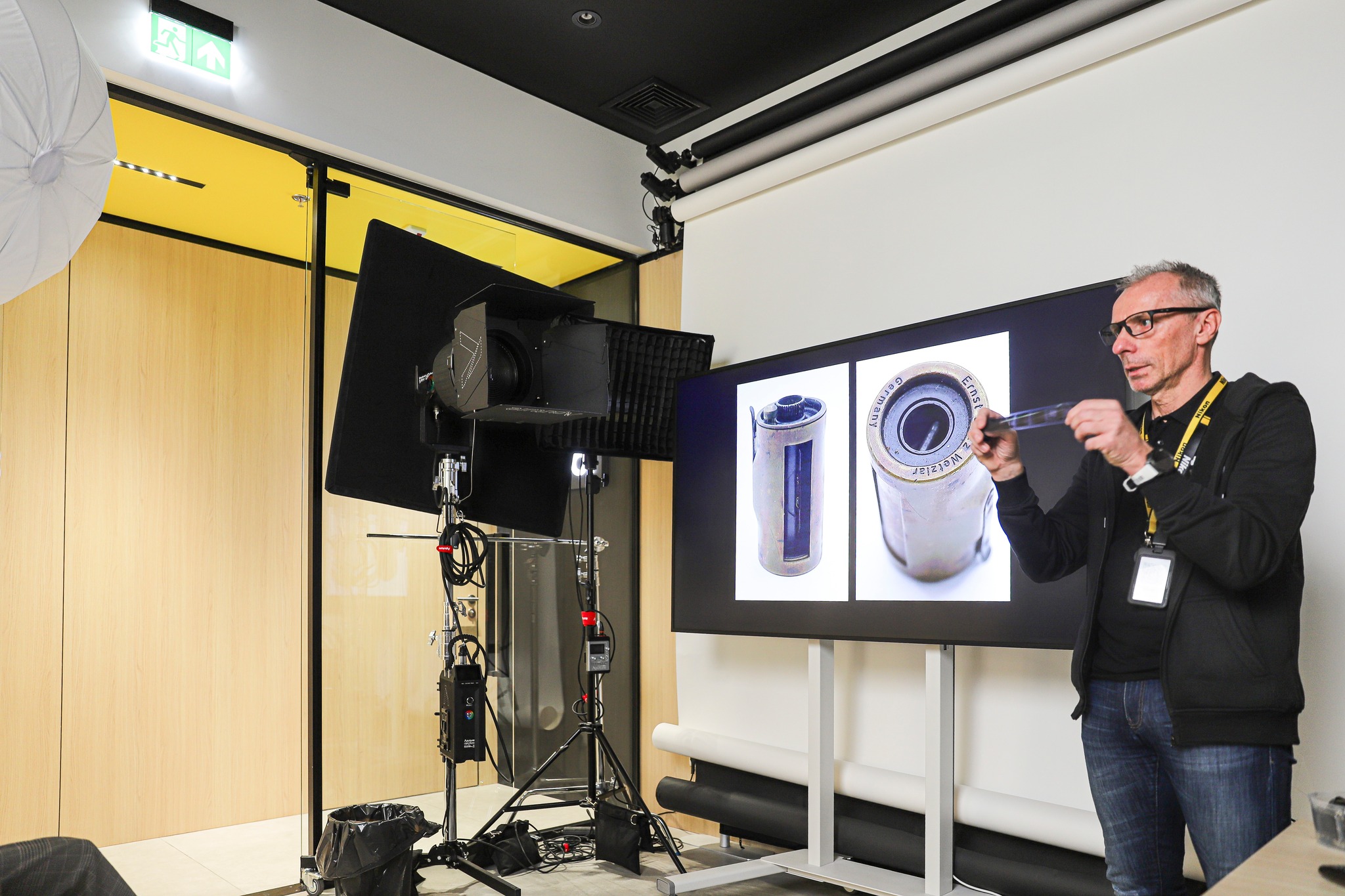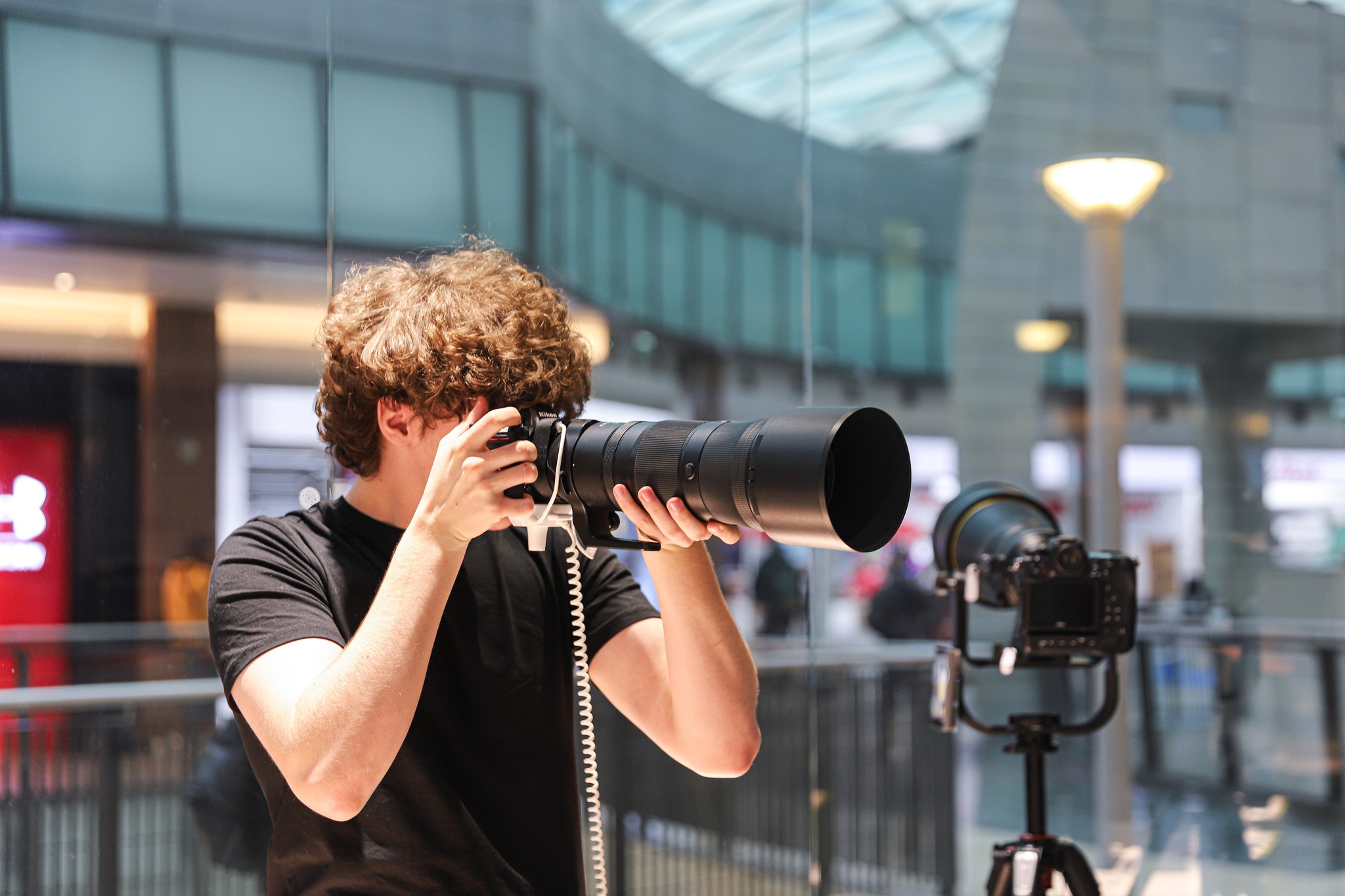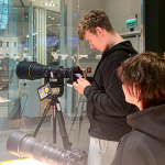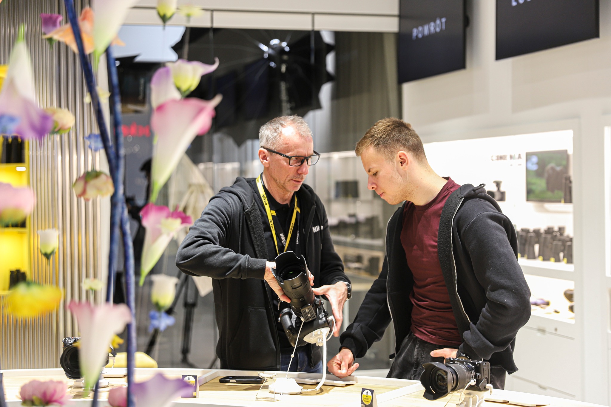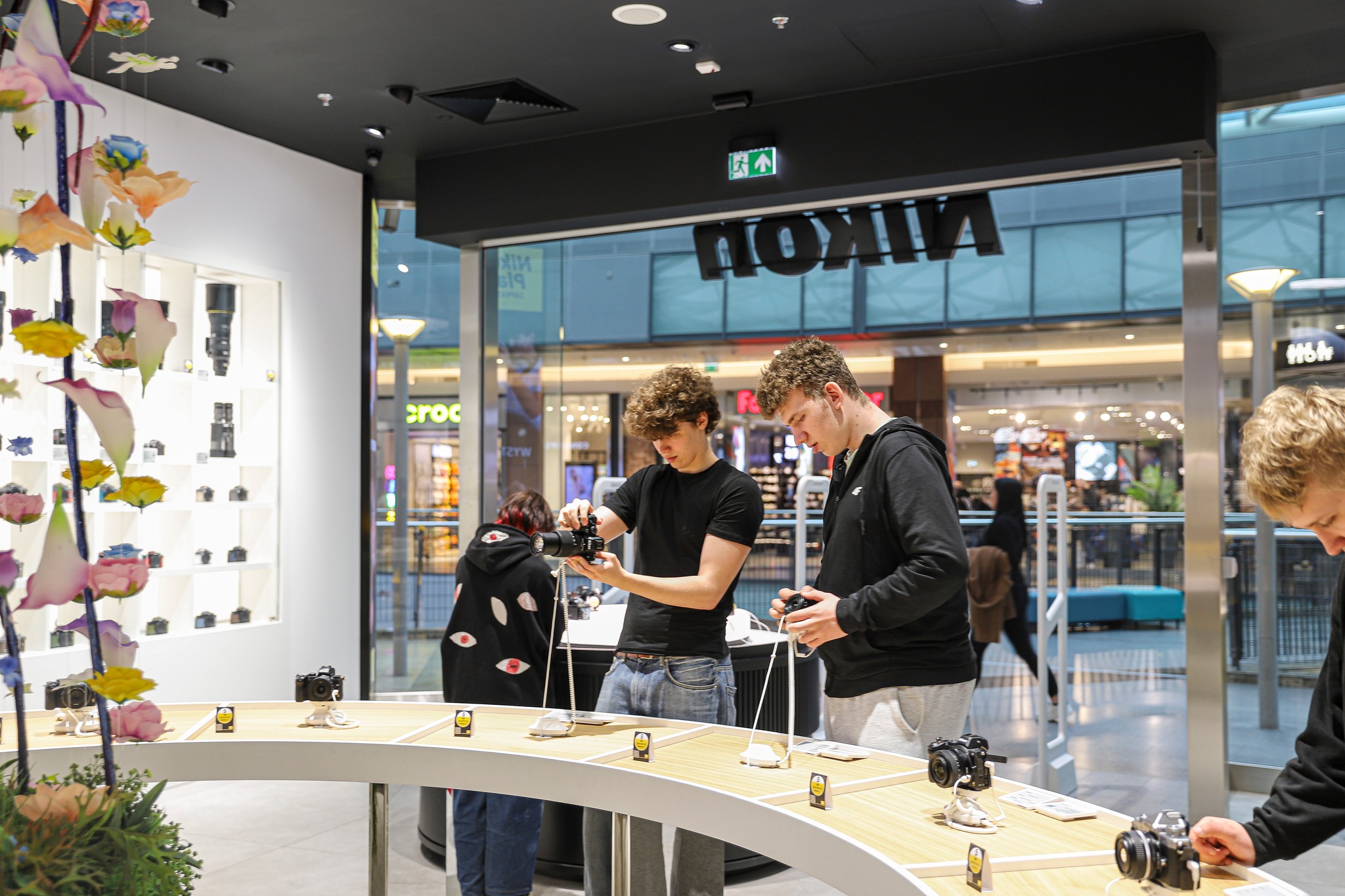 Istotnym elementem zajęć była możliwość praktycznego testowania sprzętu fotograficznego udostępnionego przez firmę Nikon. Uczniowie mogli pracować zarówno w sali szkoleniowej Nikon School, jak i w salonie, w strefie Touch & Try, gdzie sprawdzali różne modele aparatów oraz porównywali sprzęt pełno- i niepełnoklatkowy, m.in. Nikon Z50 oraz Nikon Z8. Szczególne zainteresowanie wzbudził najdłuższy istniejący obiektyw do aparatów Nikona, wykorzystywany w fotografii sportowej i przyrodniczej.