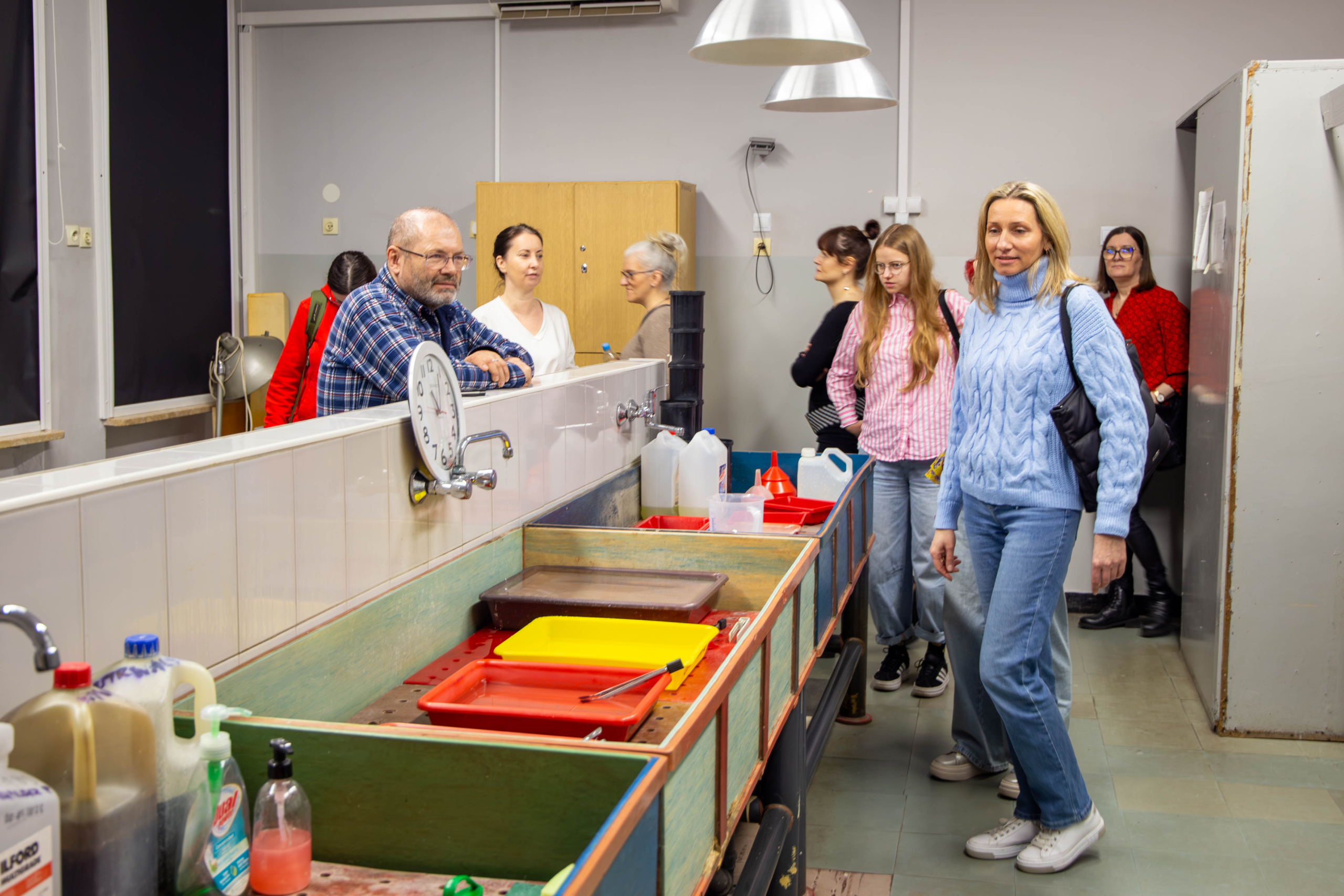 Kolejnym punktem spotkania było zwiedzanie szkolnych pracowni zawodowych. Goście mogli zobaczyć ciemnię, studio fotograficzne, w którym uczniowie uczą się pracy ze sprzętem