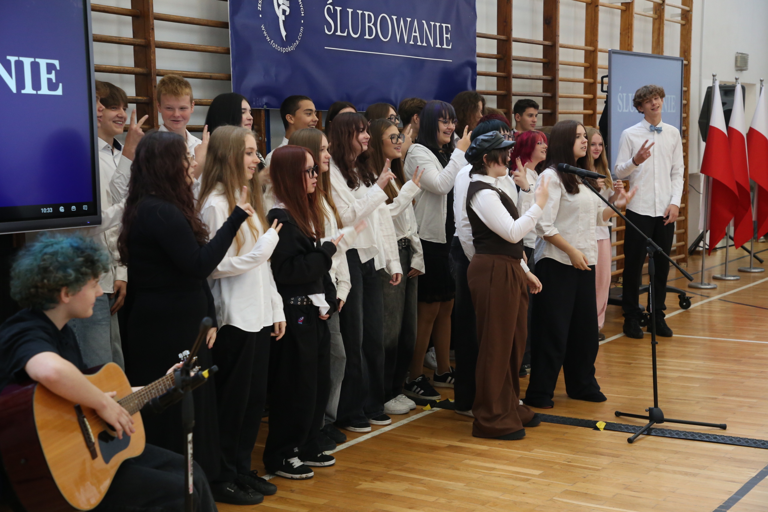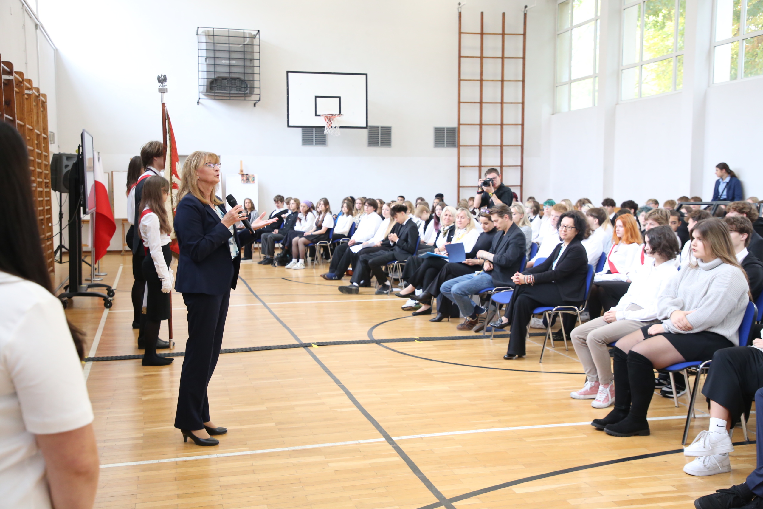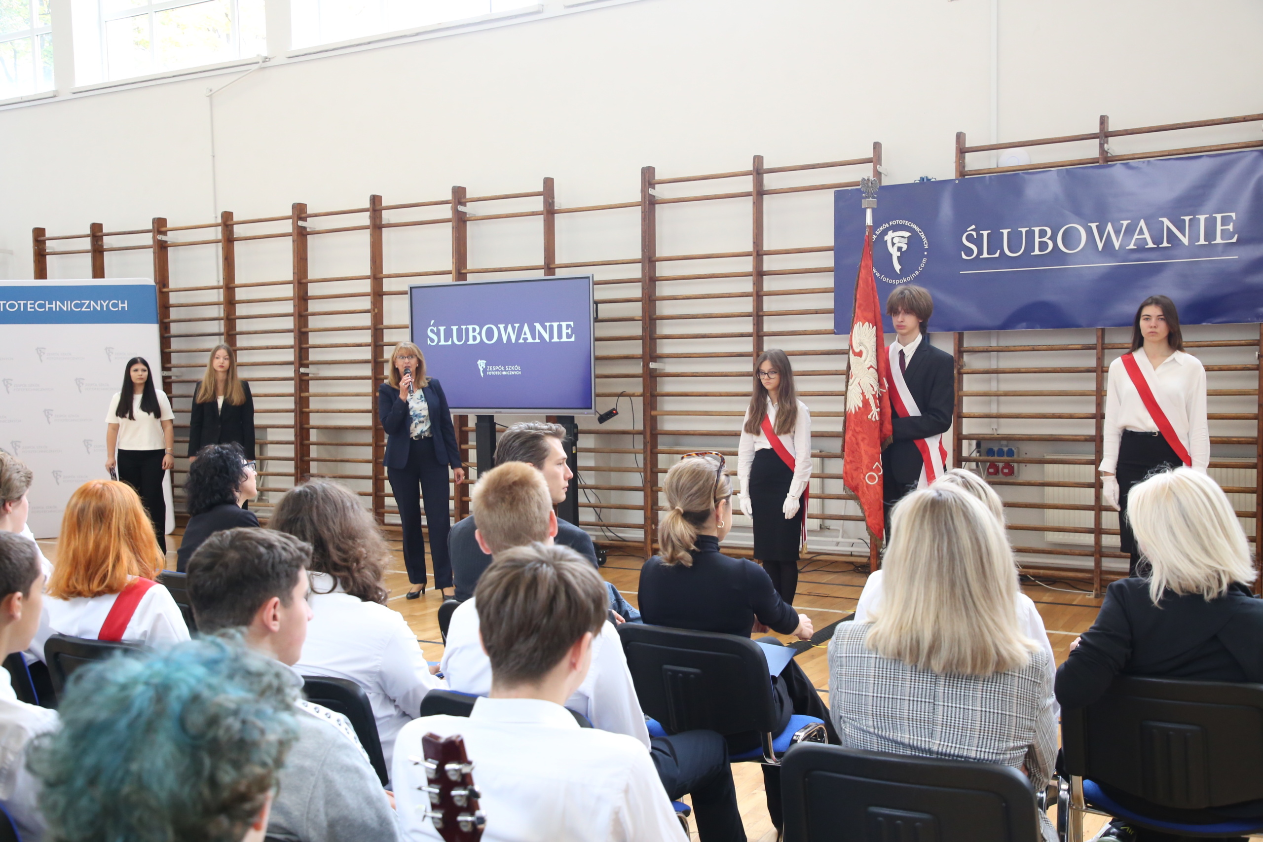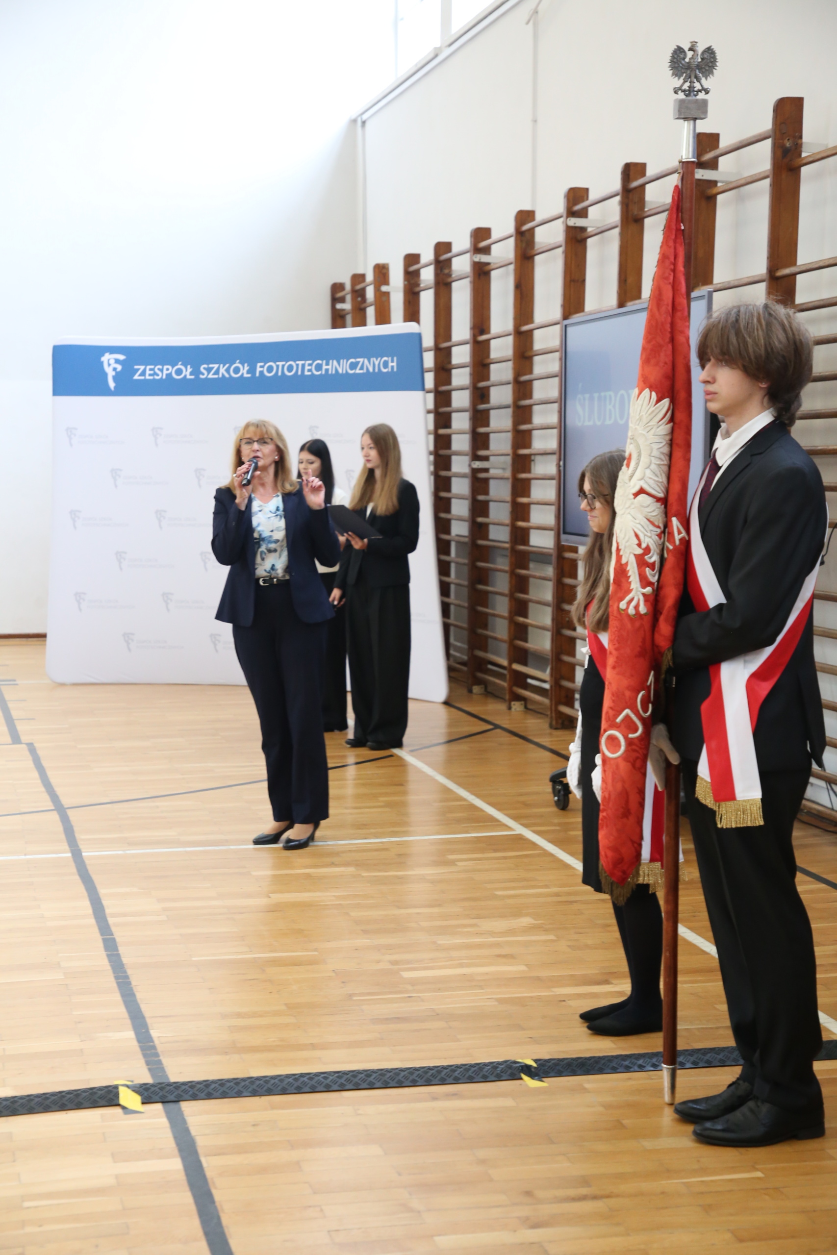 Uroczystość rozpoczęła się od wprowadzenia pocztu sztandarowego oraz odśpiewania hymnu narodowego. Następnie głos zabrała pani Dyrektor, która serdecznie powitała pierwszoklasistów i podkreśliła znaczenie ślubowania jako aktu zobowiązania do rzetelnej nauki, odpowiedzialności i godnego reprezentowania szkoły.
