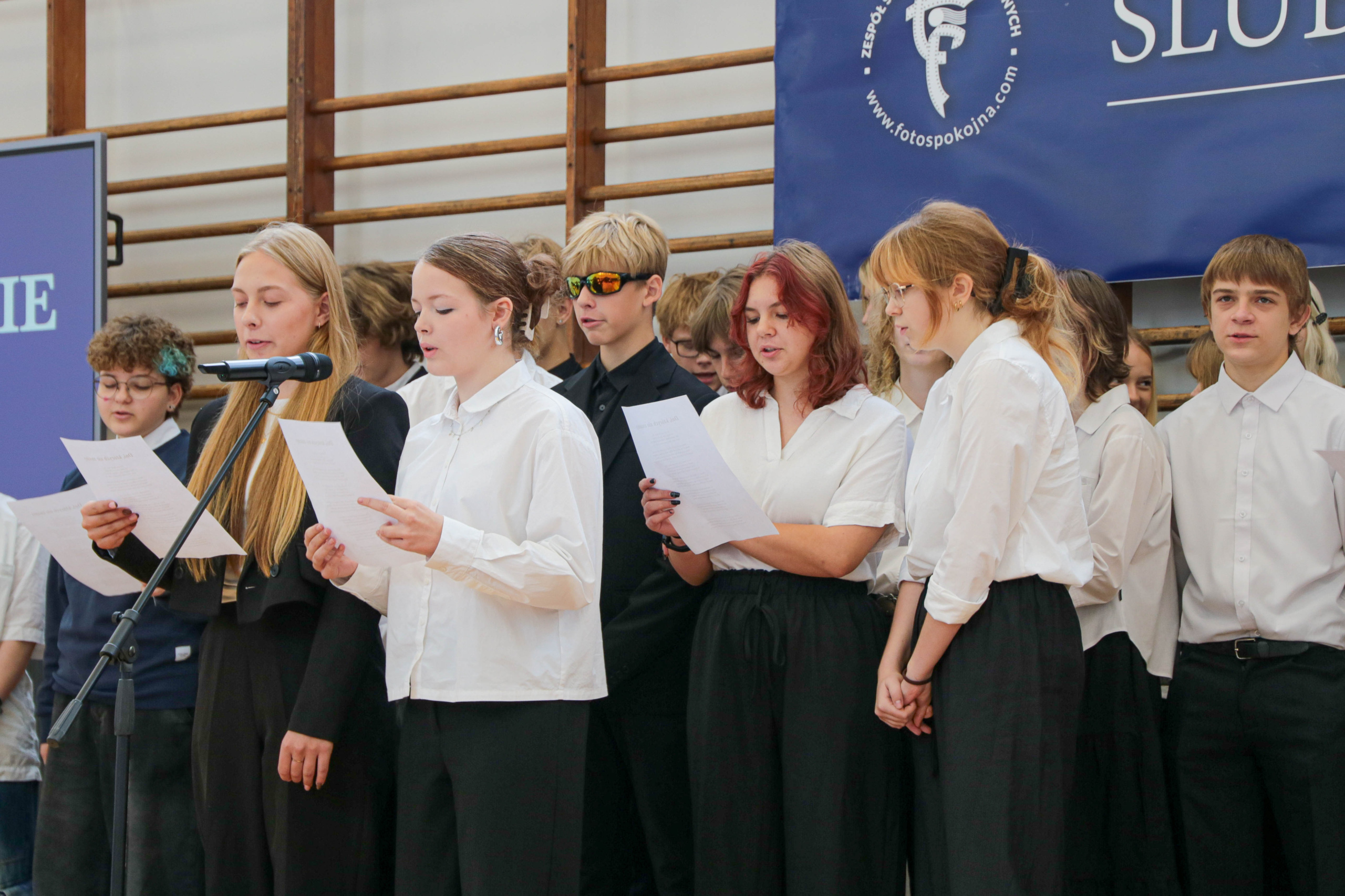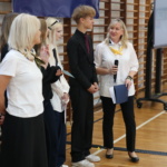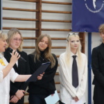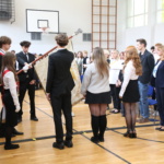 W części artystycznej każda z pierwszych klas zaprezentowała się w przygotowanym repertuarze, a wytypowani przedstawiciele zespołów klasowych wzięli udział w konkursie wiedzy o naszej szkole. Uczestnicy zostali nagrodzeni słodkościami.