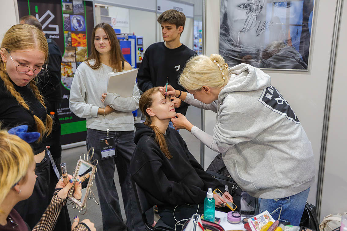 Jak co roku, wraz z początkiem jesieni, uczniowie i uczennice naszego Fototechnikum wzięli udział w prestiżowych Targach Gold Expo. W dniach 2–3 października młodzież zaaranżowała na terenie targów dwa profesjonalne studia fotograficzne oraz tymczasowe studia plenerowe.